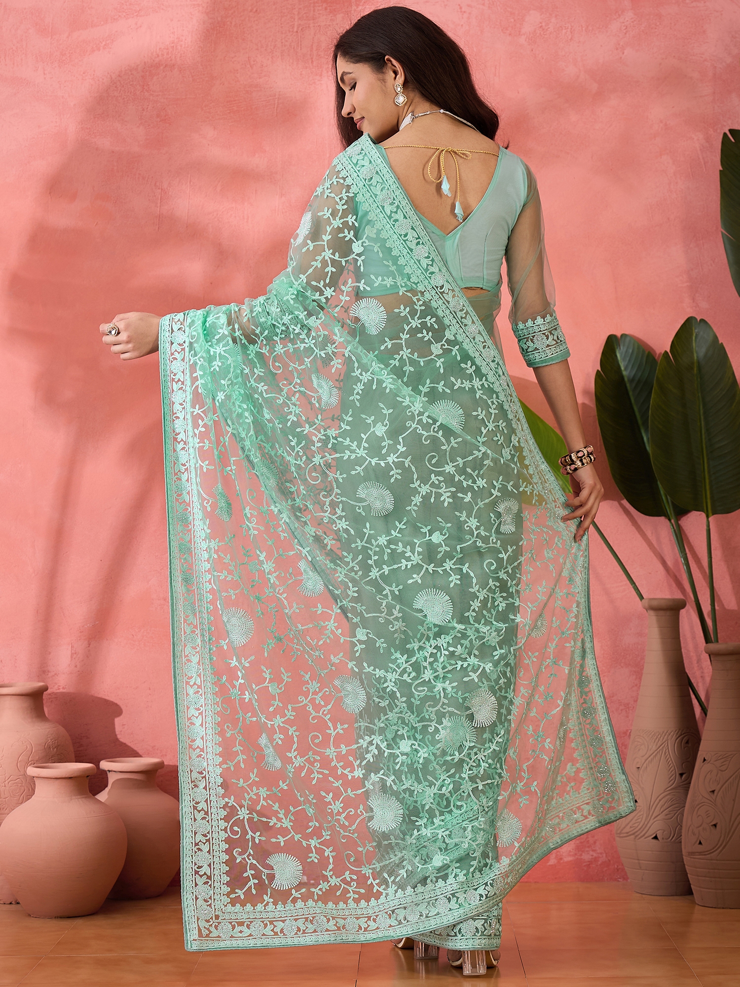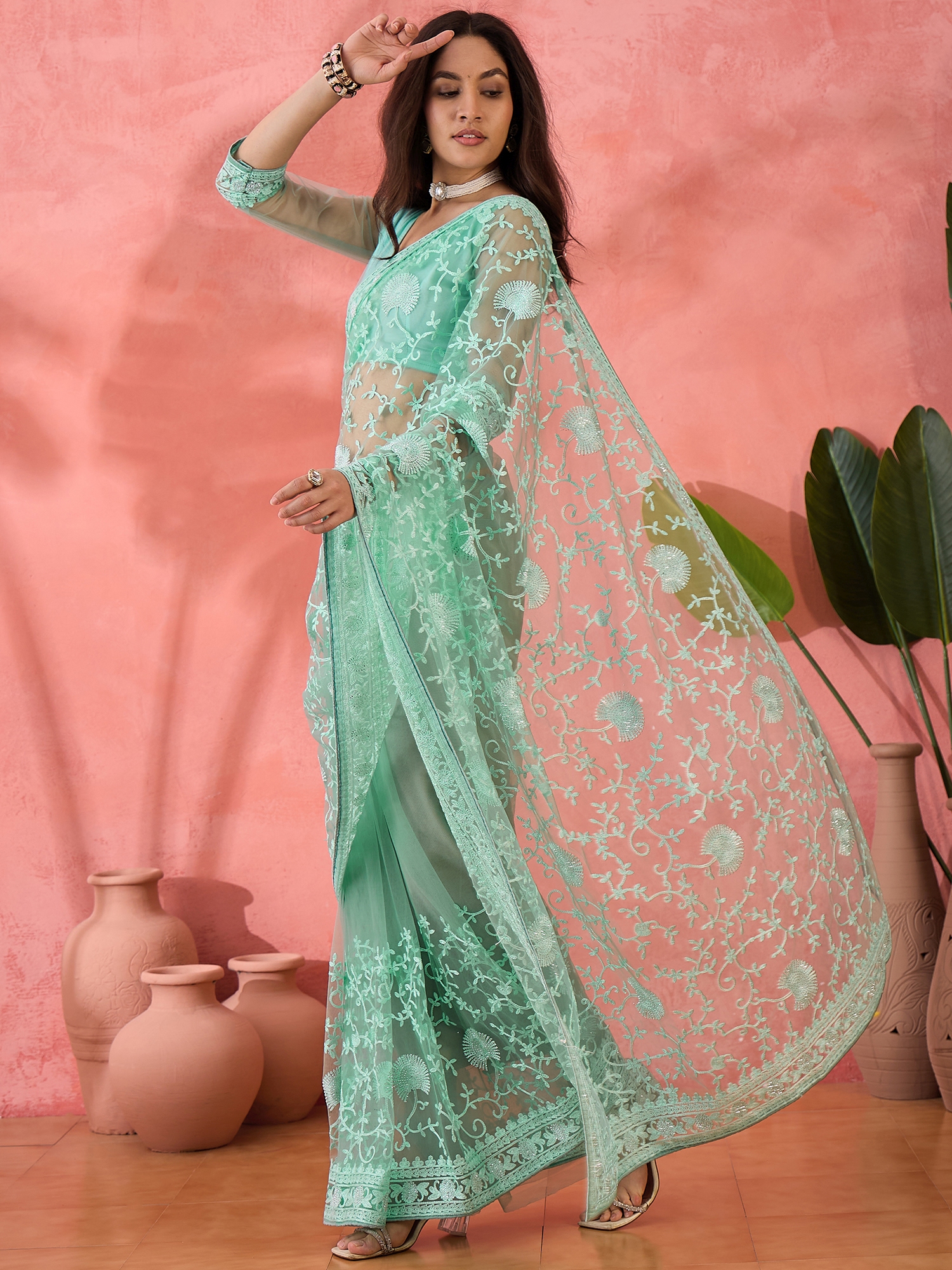 AASTHA FASHION Fashion Dream Womens Sea Green Net Saree | Soft & Elegant Traditional Wear
