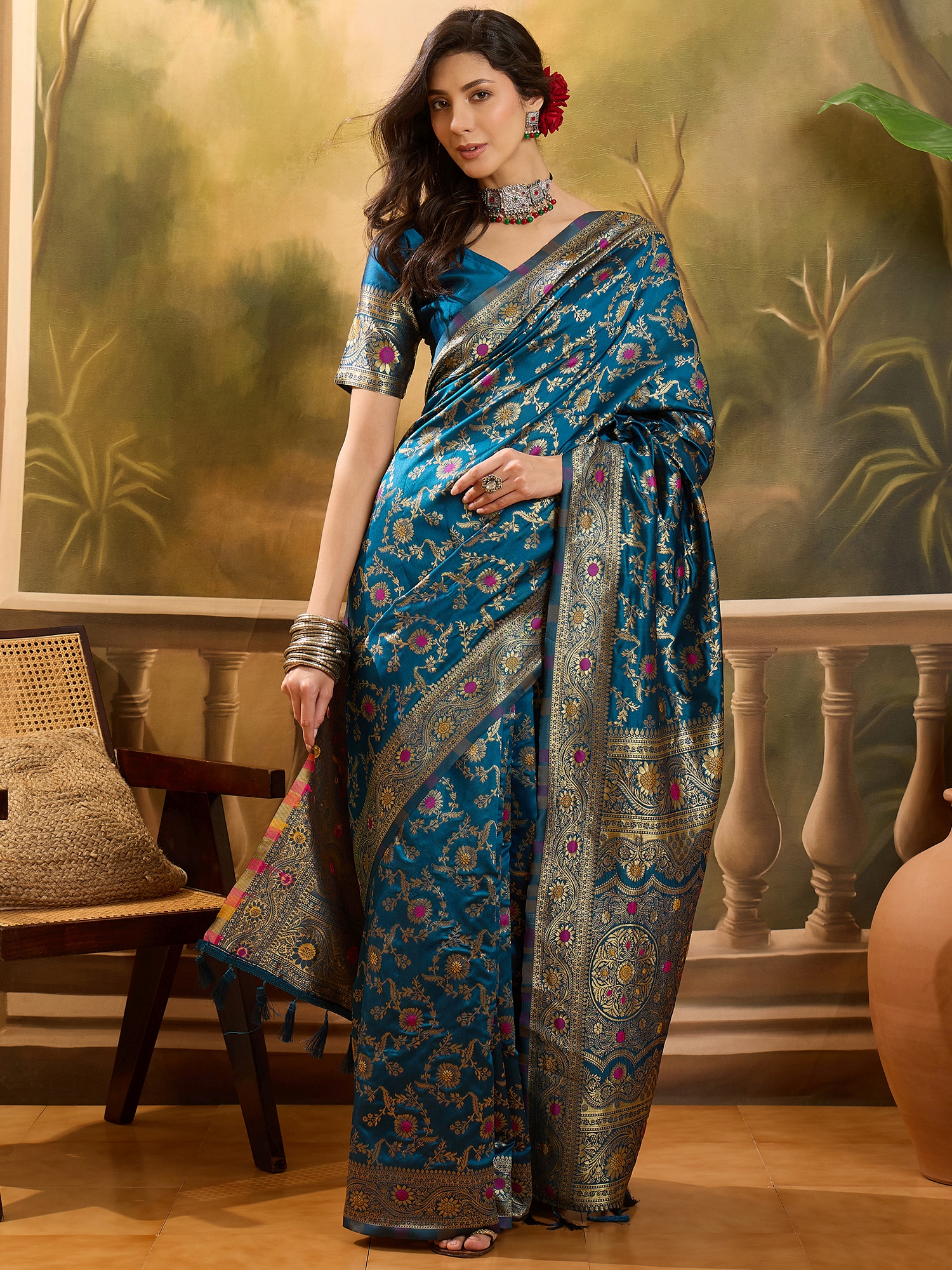 • Saree Work-Weaving ,Blouse Work- Banarasi Jacquard