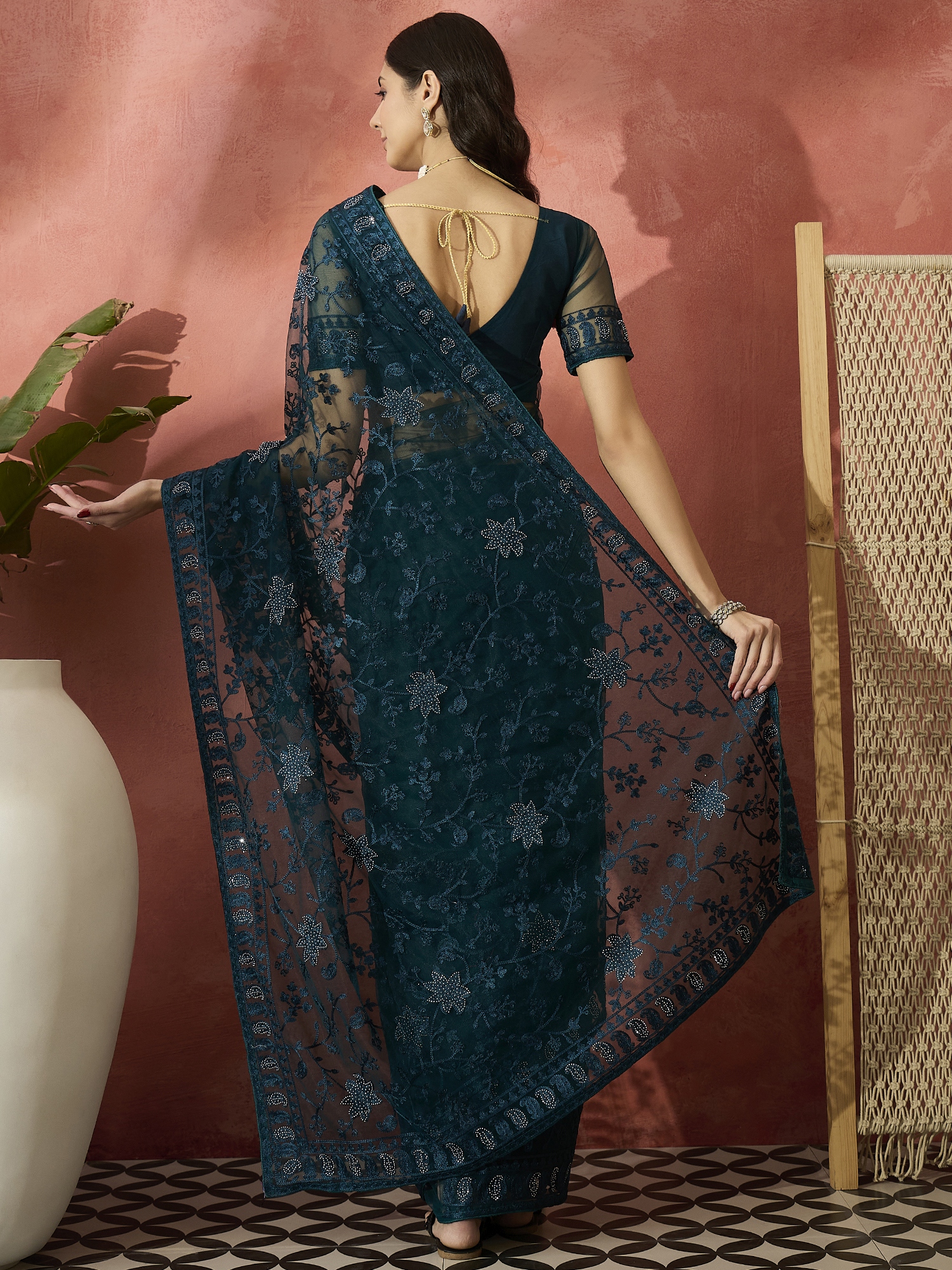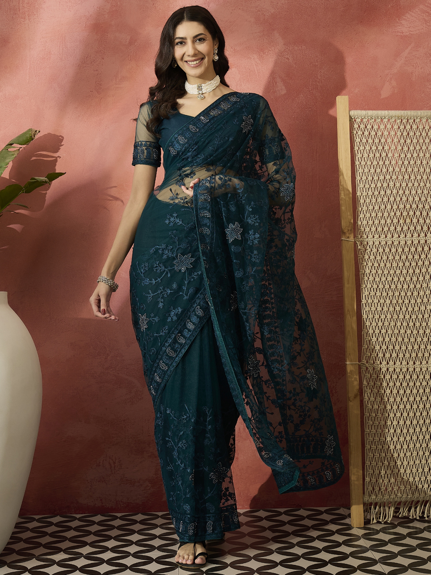 AASTHA FASHION Fashion Dream Womens Teal Net Saree | Soft & Elegant Traditional Wear