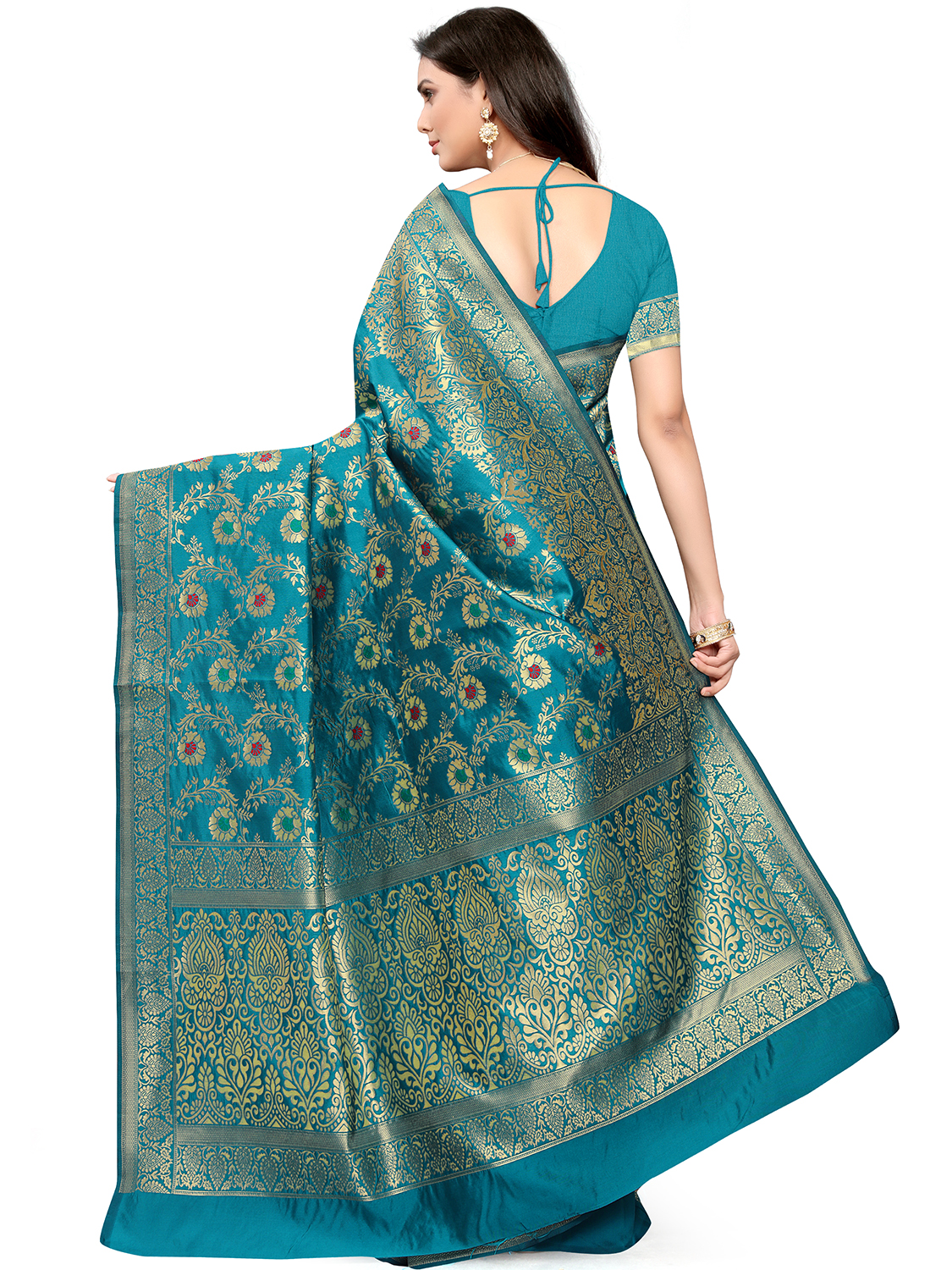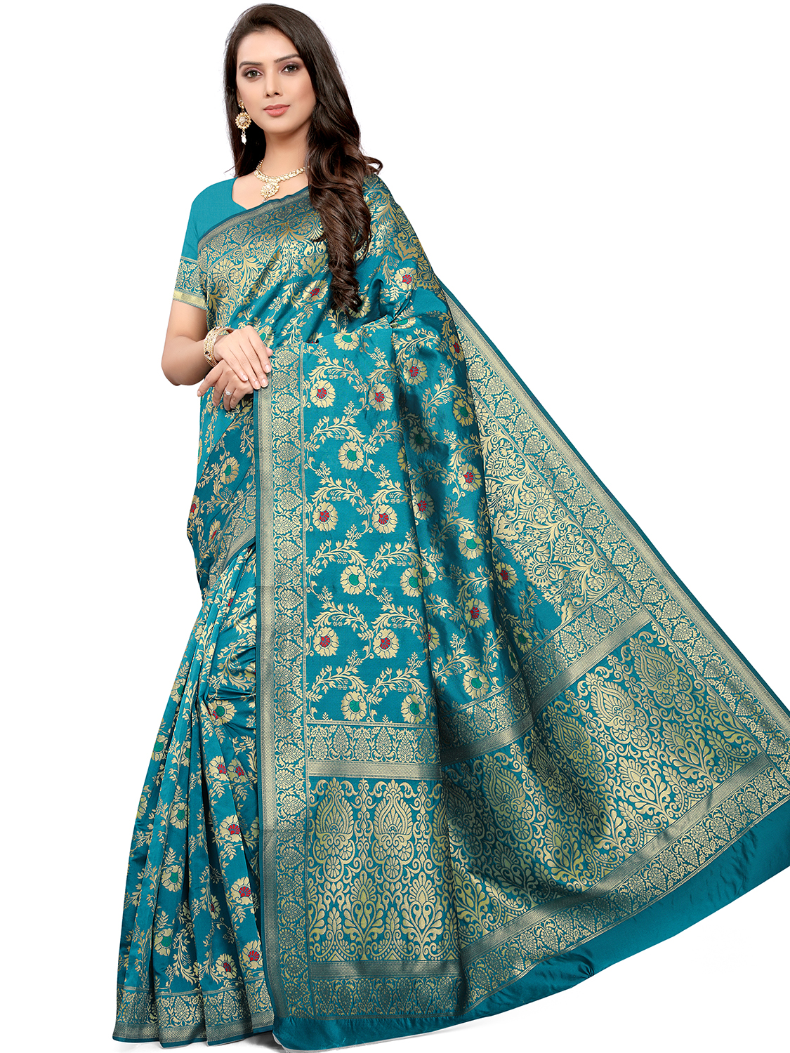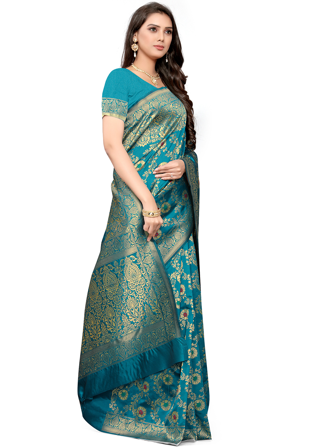 AASTHA FASHION Fashion Dream Womens Turquoise Silk Blend Saree | Soft & Elegant Traditional Wear