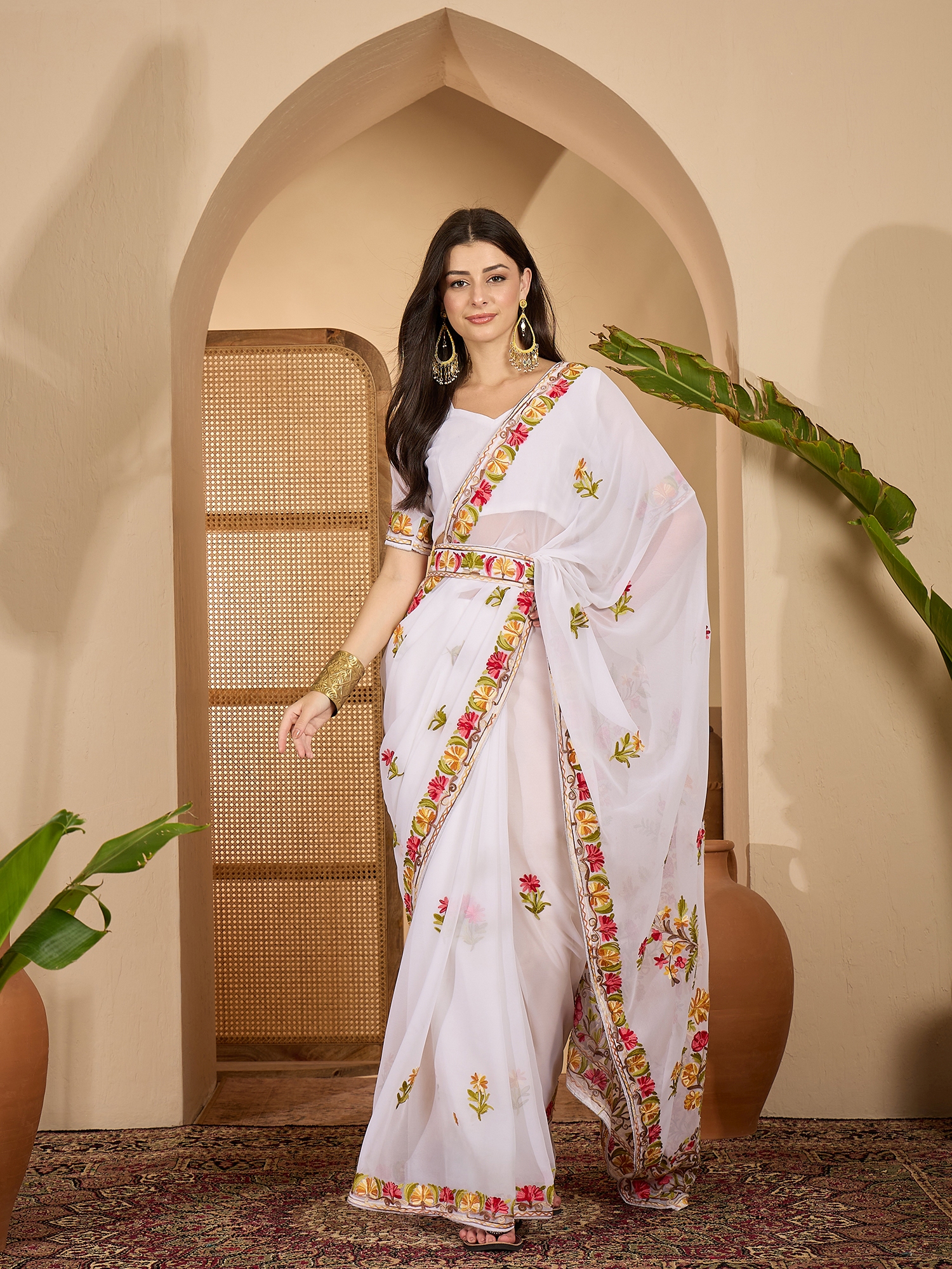 AASTHA FASHION Fashion Dream Womens White Georgette Saree | Soft & Elegant Traditional Wear