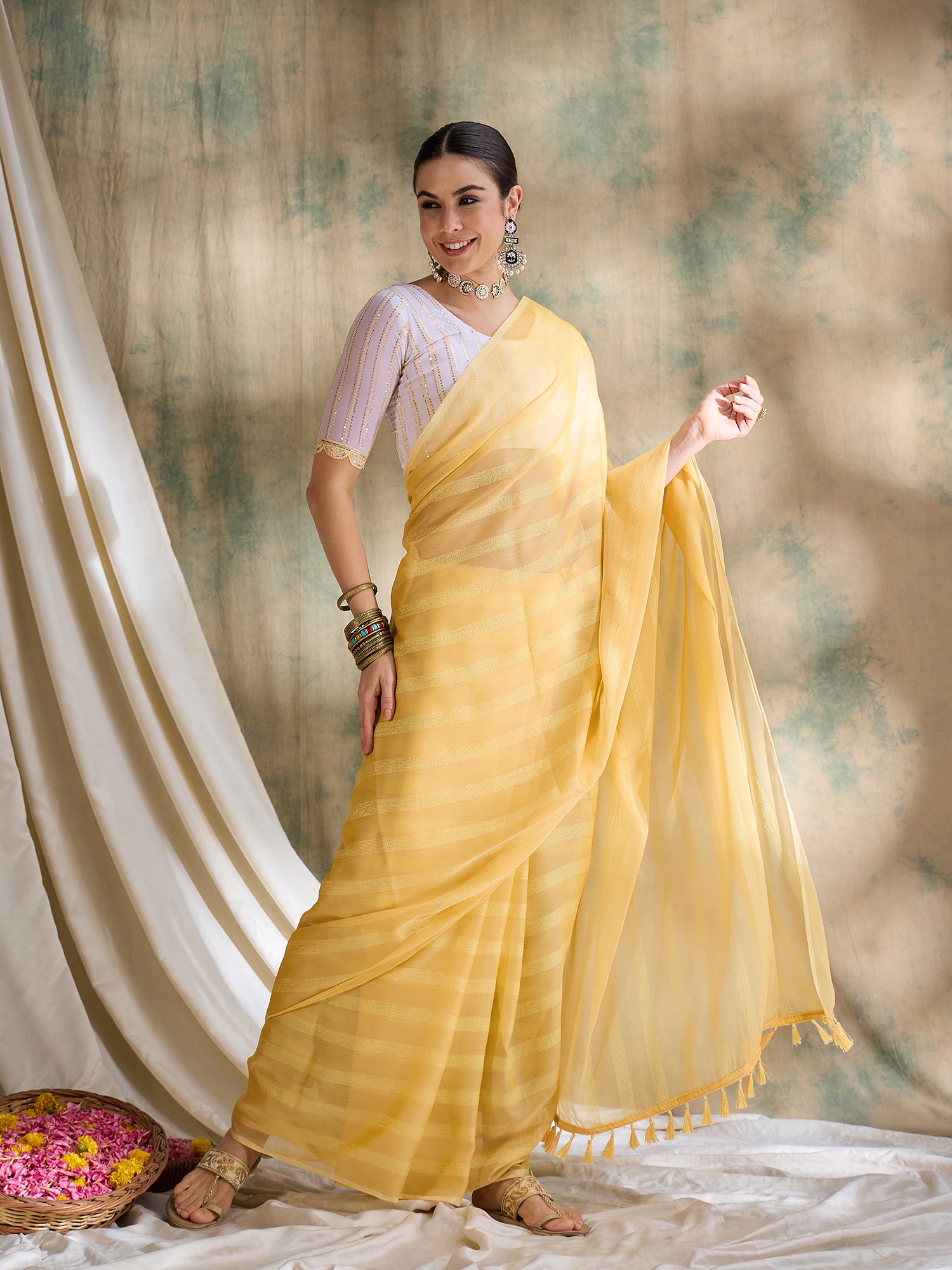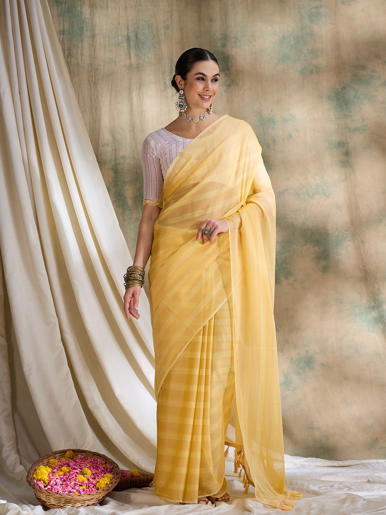 AASTHA FASHION Fashion Dream Womens Yellow Vichitra Silk Saree | Soft & Elegant Traditional Wear