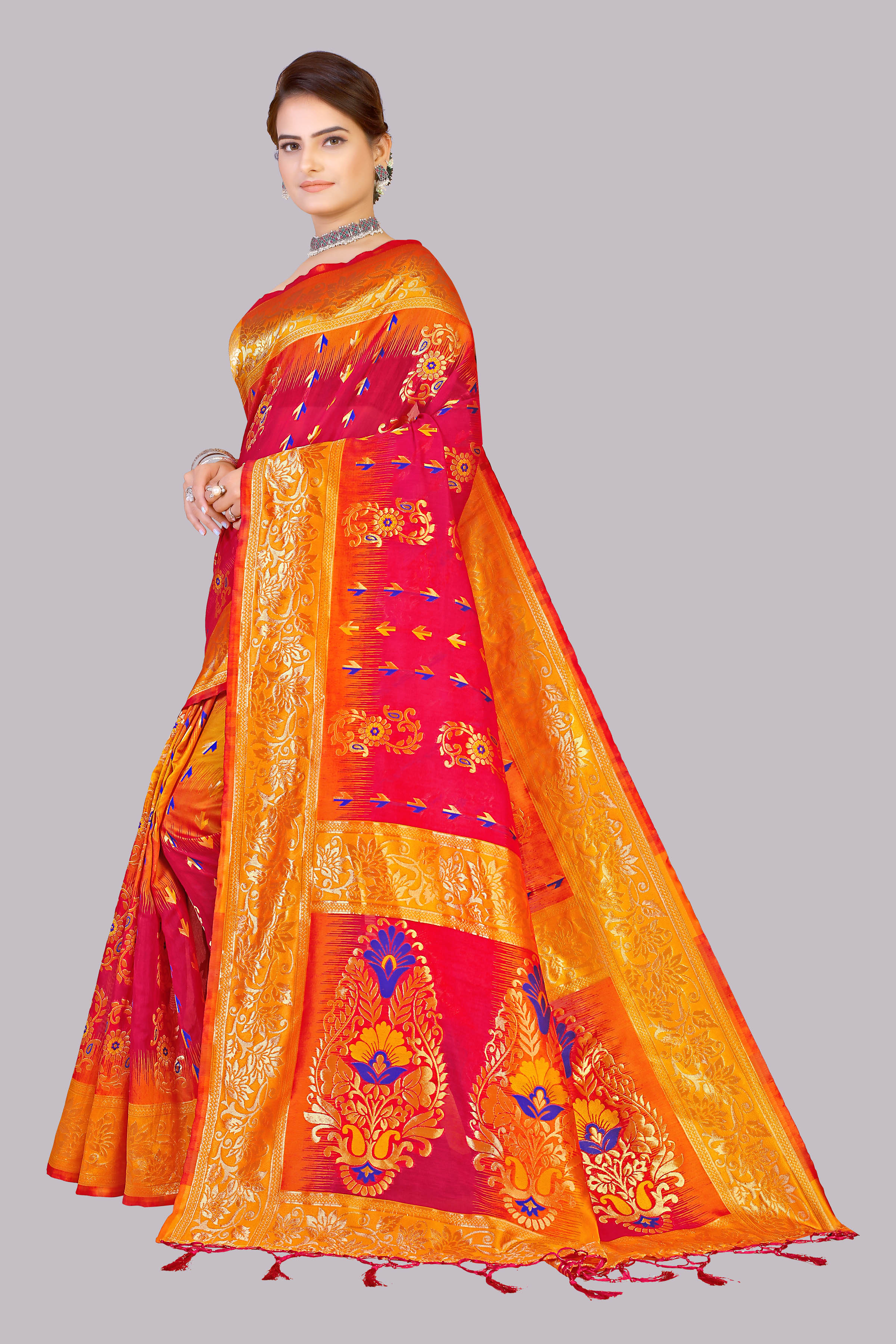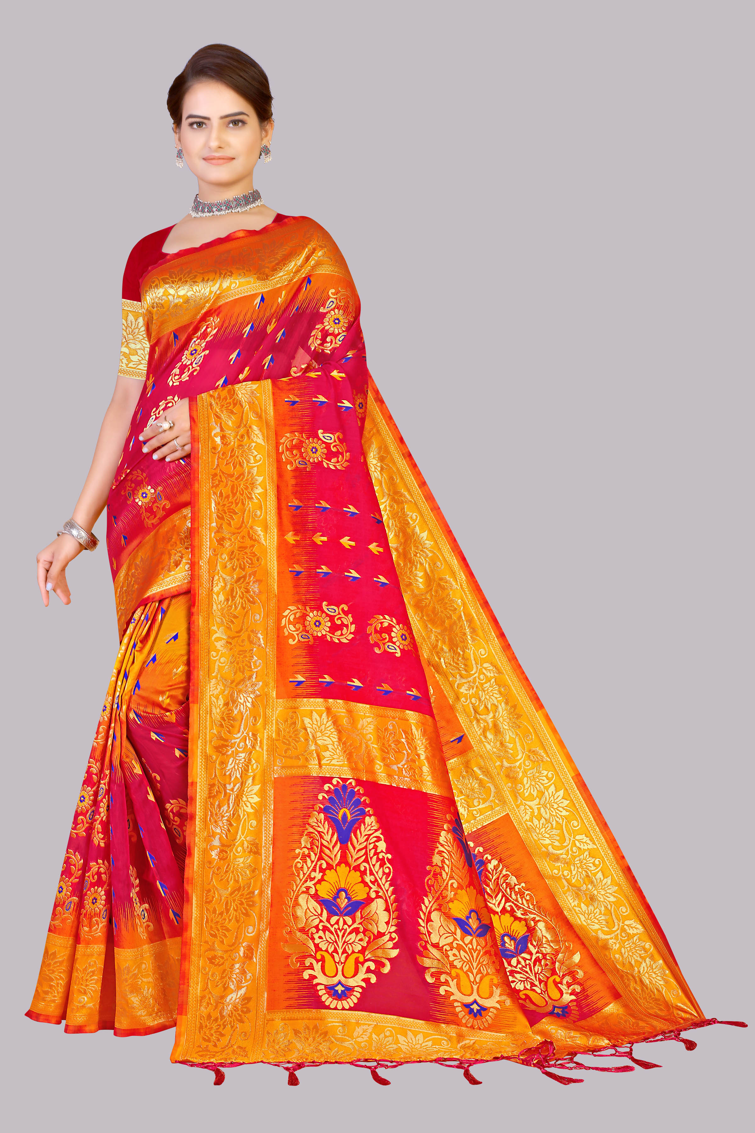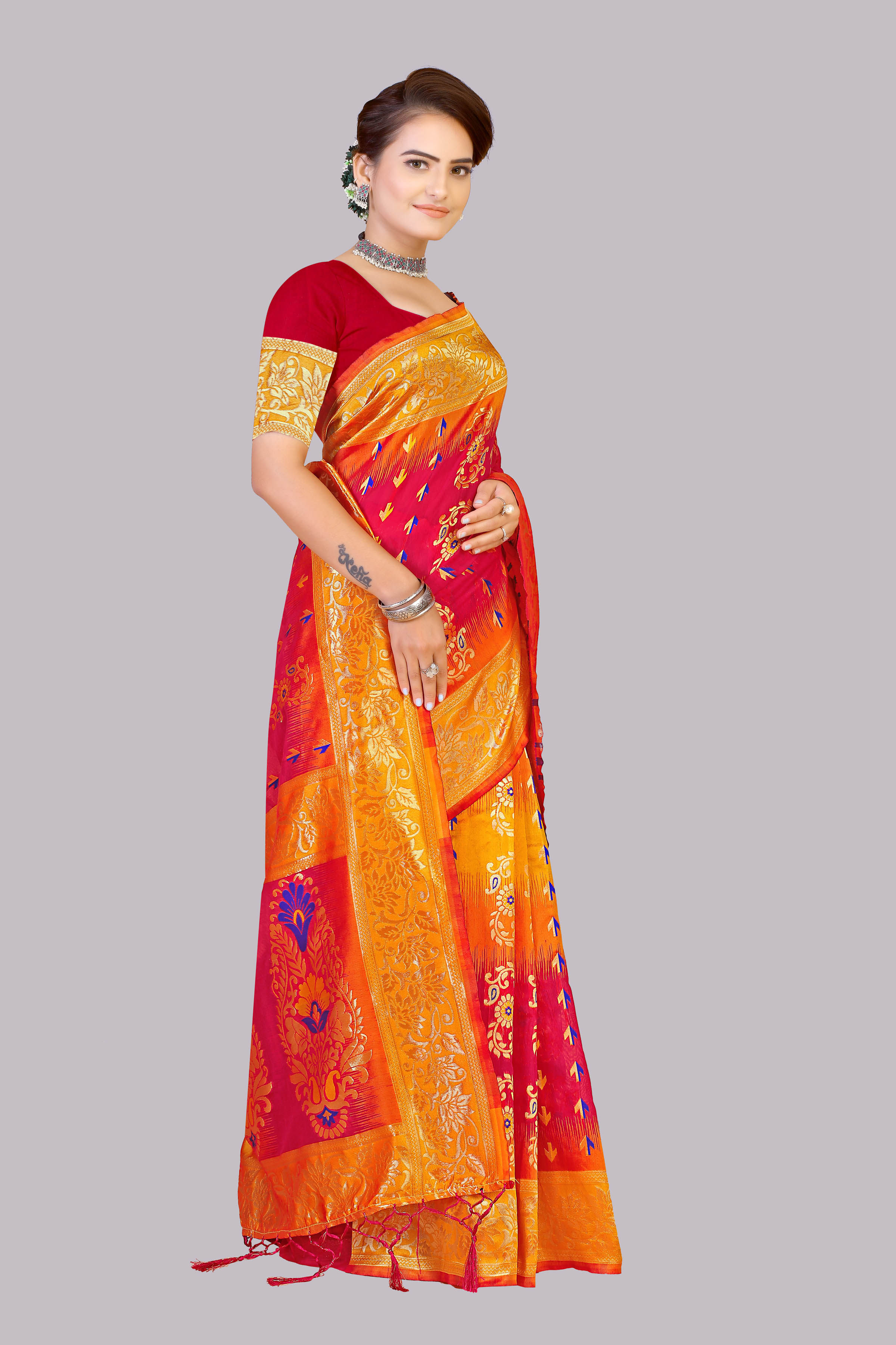 AASTHA FASHION Fashion Dream Womens Yellow,Wine Banarasi Silk Saree | Soft & Elegant Traditional Wear