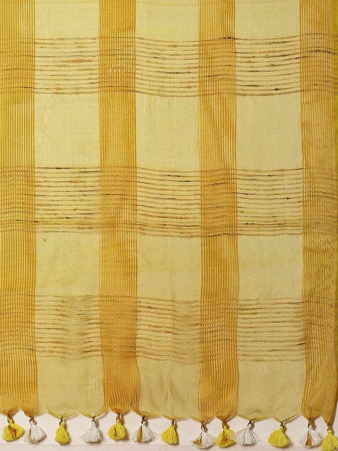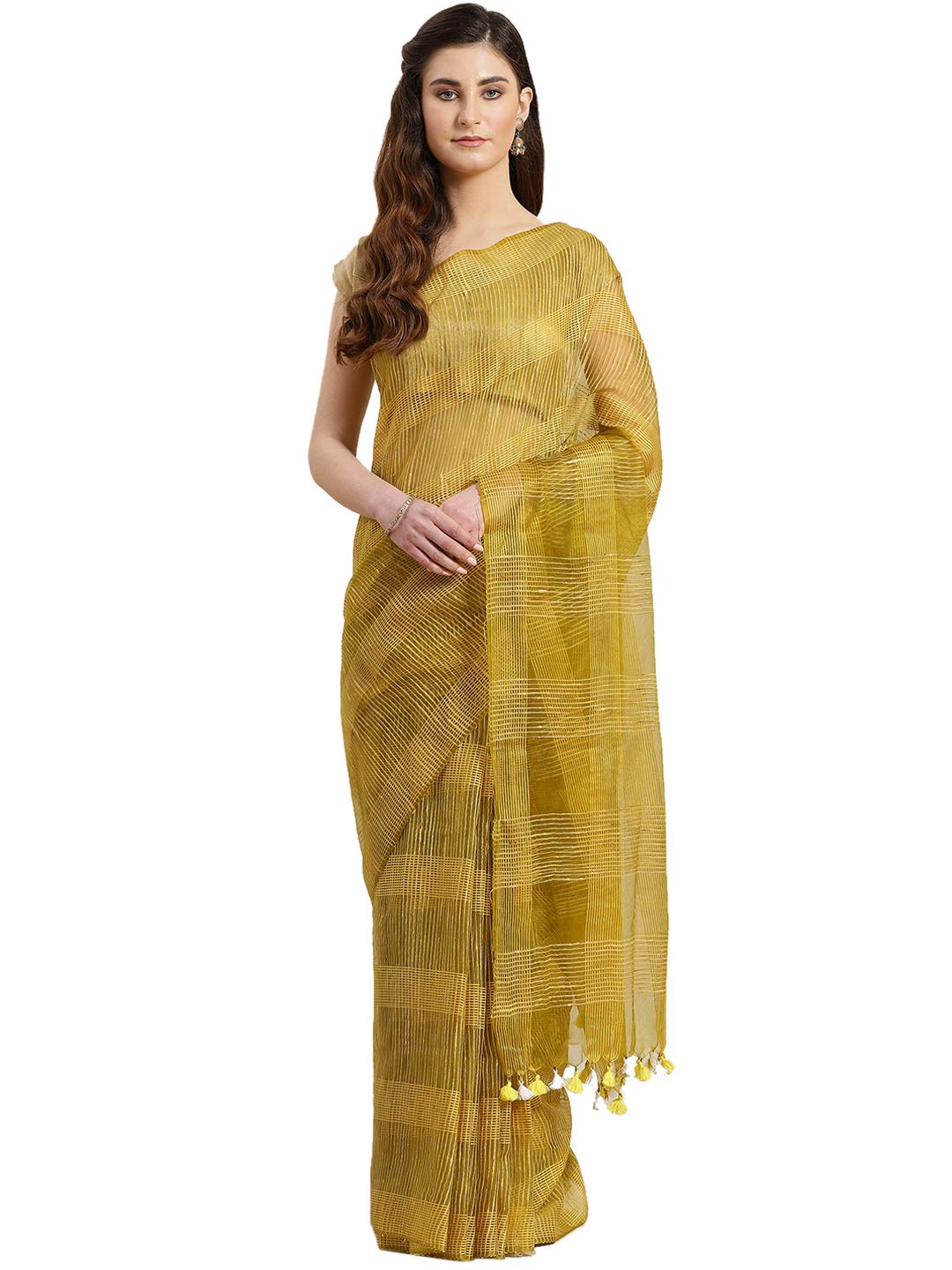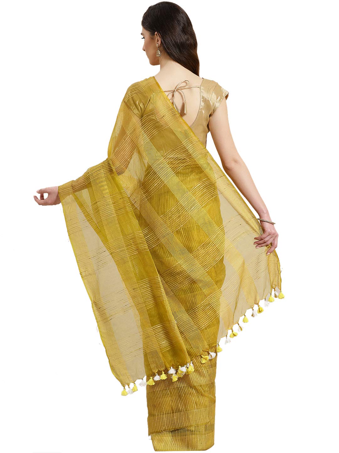 Delicate and beautiful textured Kota Silk and Linen blended fabric. The sari has a fine zari woven design making apparel stand out. A timeless handcrafted piece to give you a chic and classy style statement.