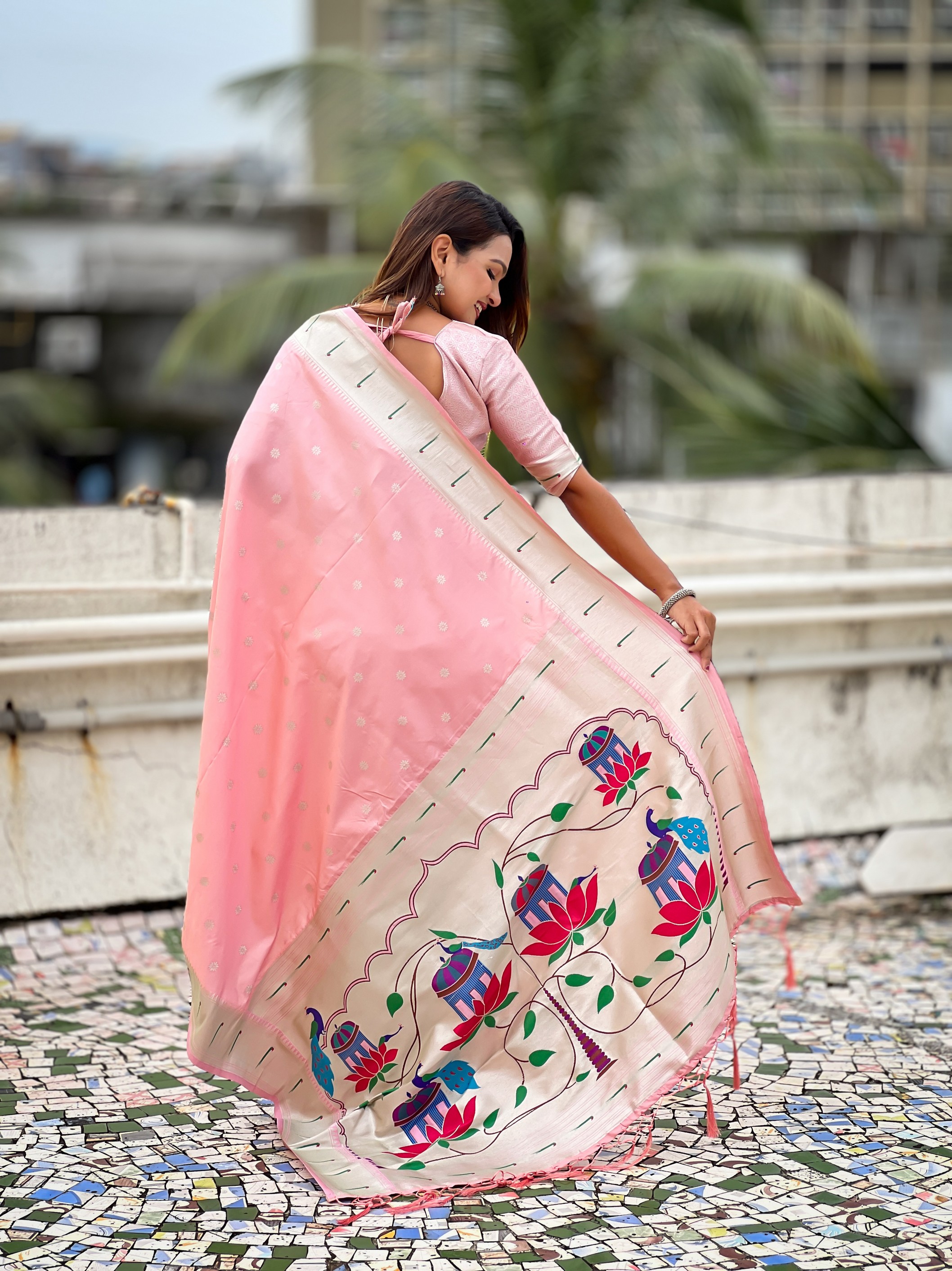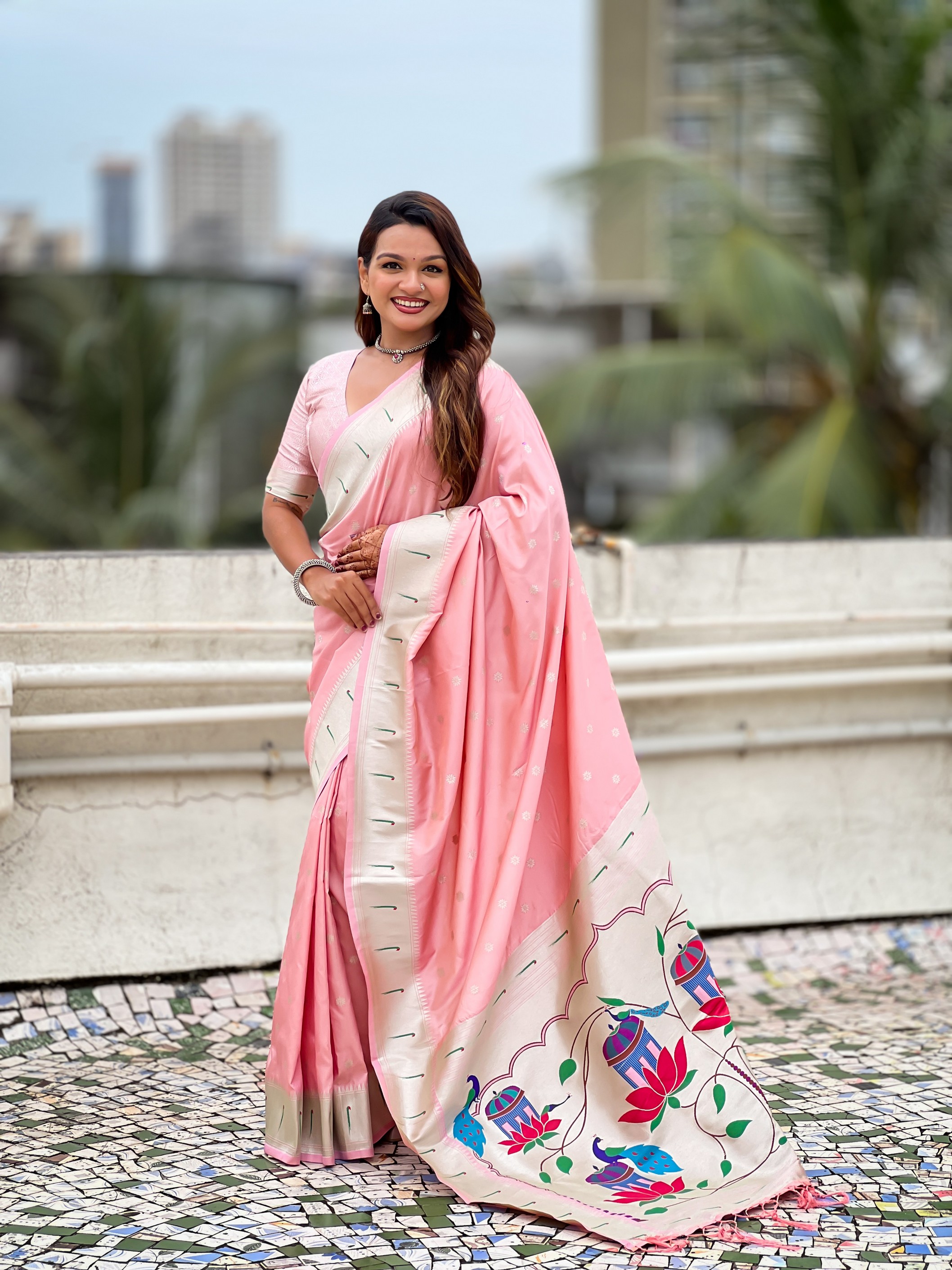 Baby Pink Color Paithani Silk Woven Designer Ceremonial Partywear Saree