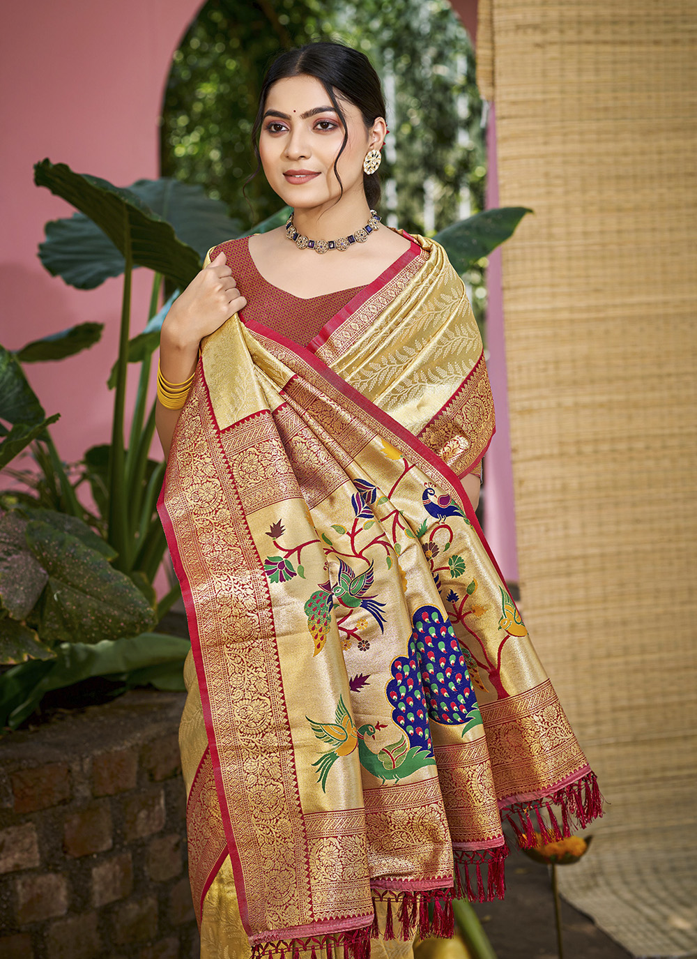 Beige Color Kanjivaram Silk Woven Jari Designer Ethnic Saree