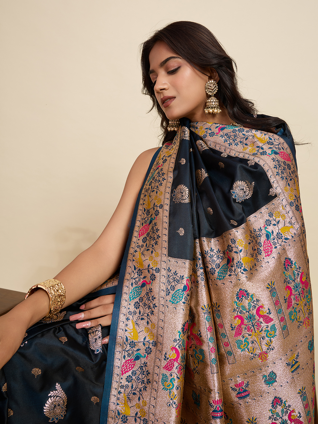 Black Color Black Fabric Wevon Meenakari Designer Sophisticated Ceremonial Saree