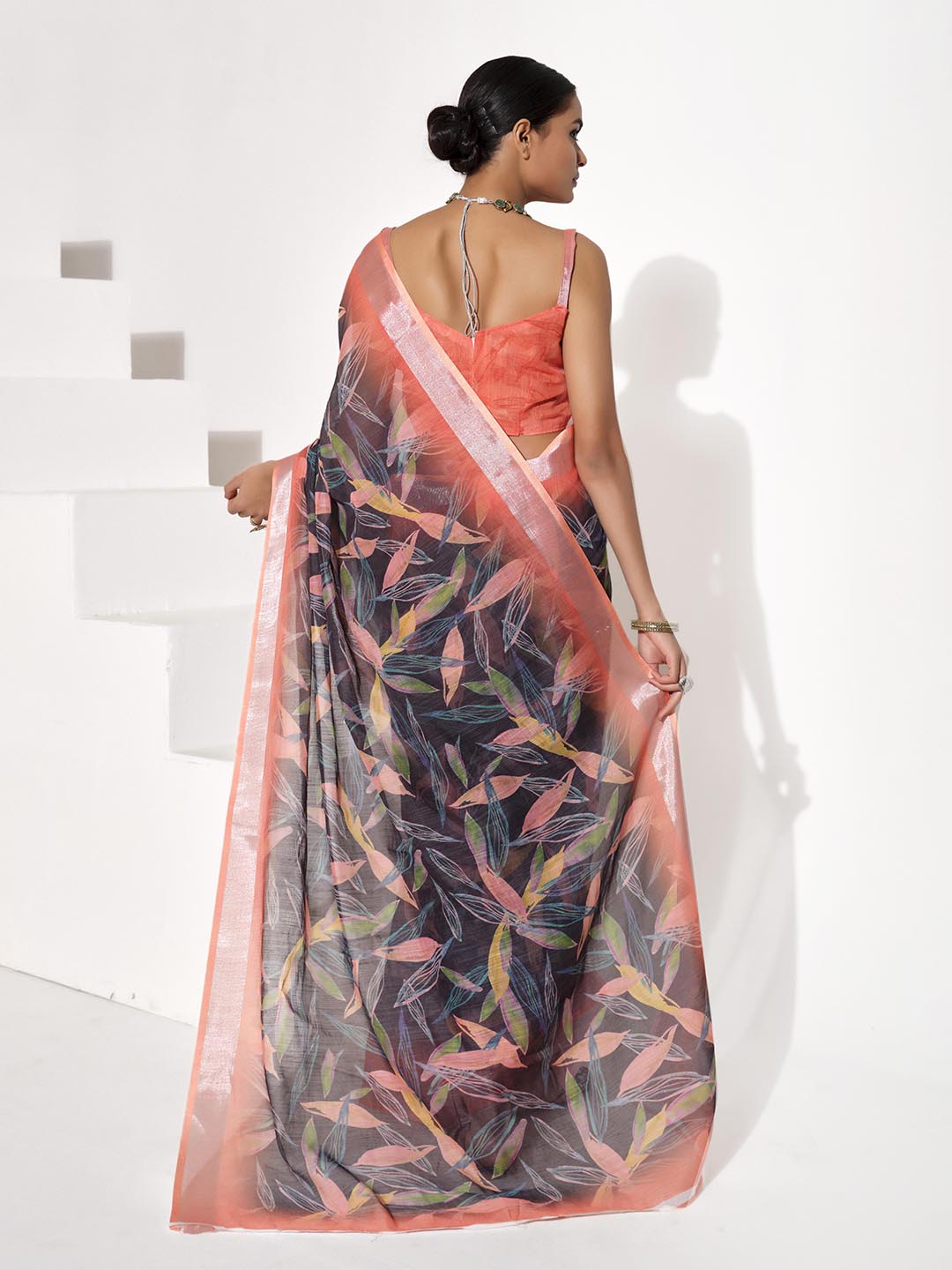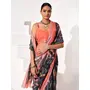 Black Color Cotton Blend Girlie Designer Printed Saree For Rich Sophisticated Looks