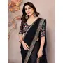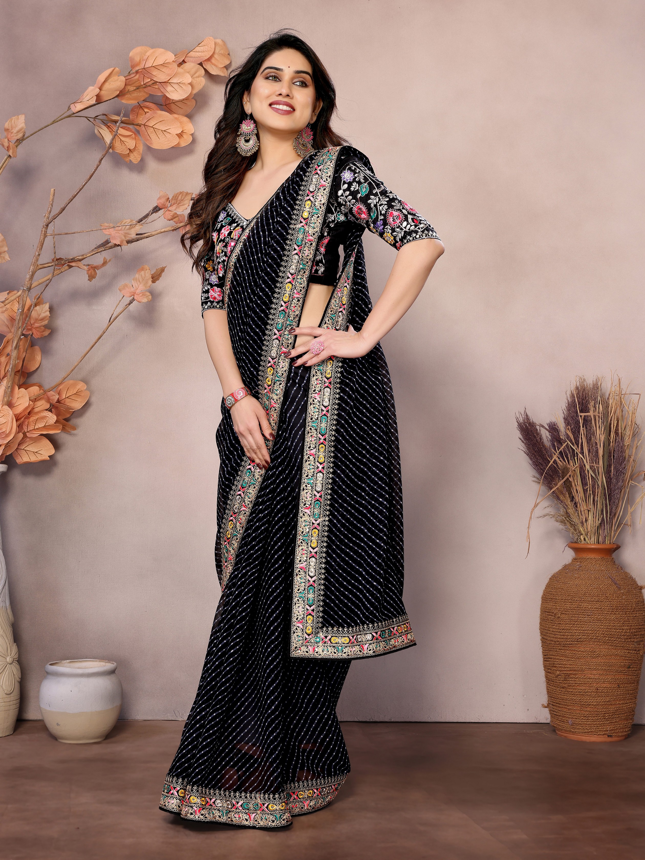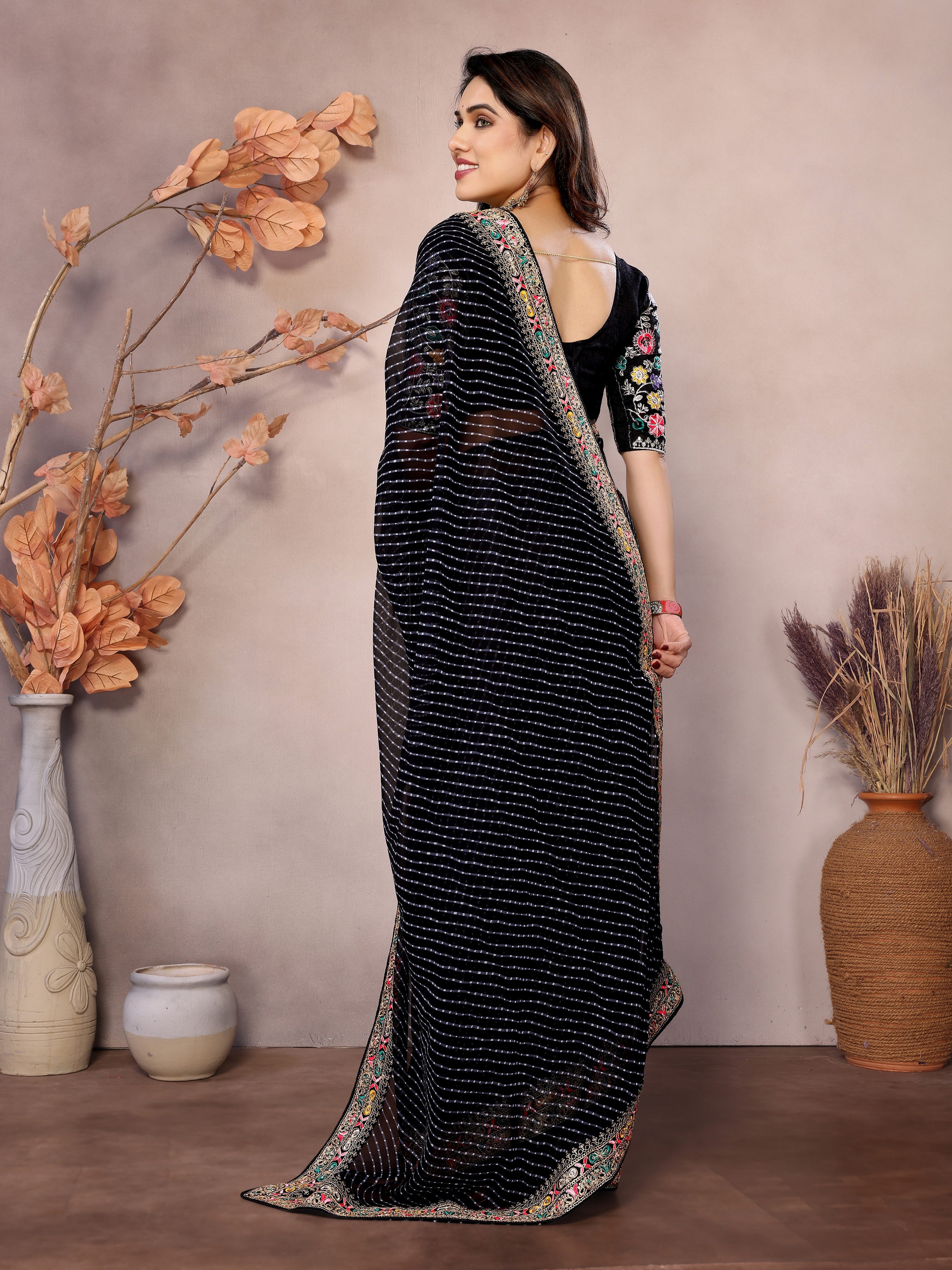 Black Color Georgette Fabric Designer Embroidered Traditional Leheria Saree