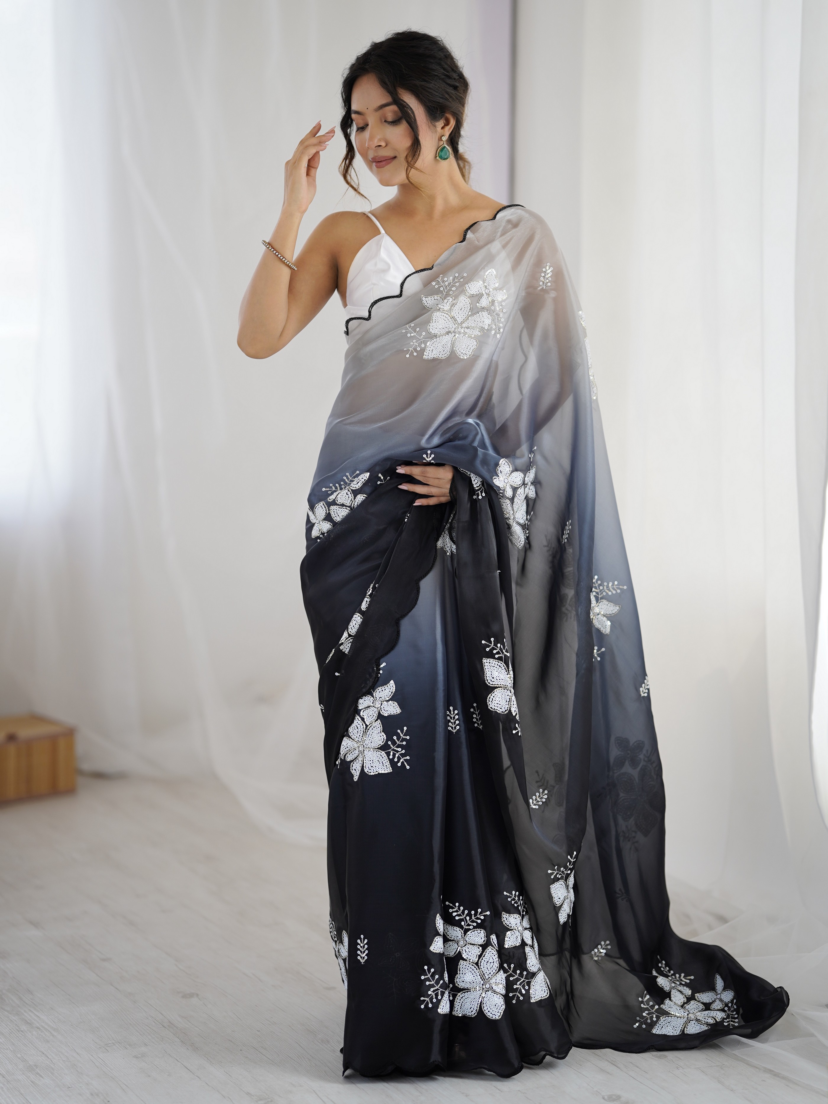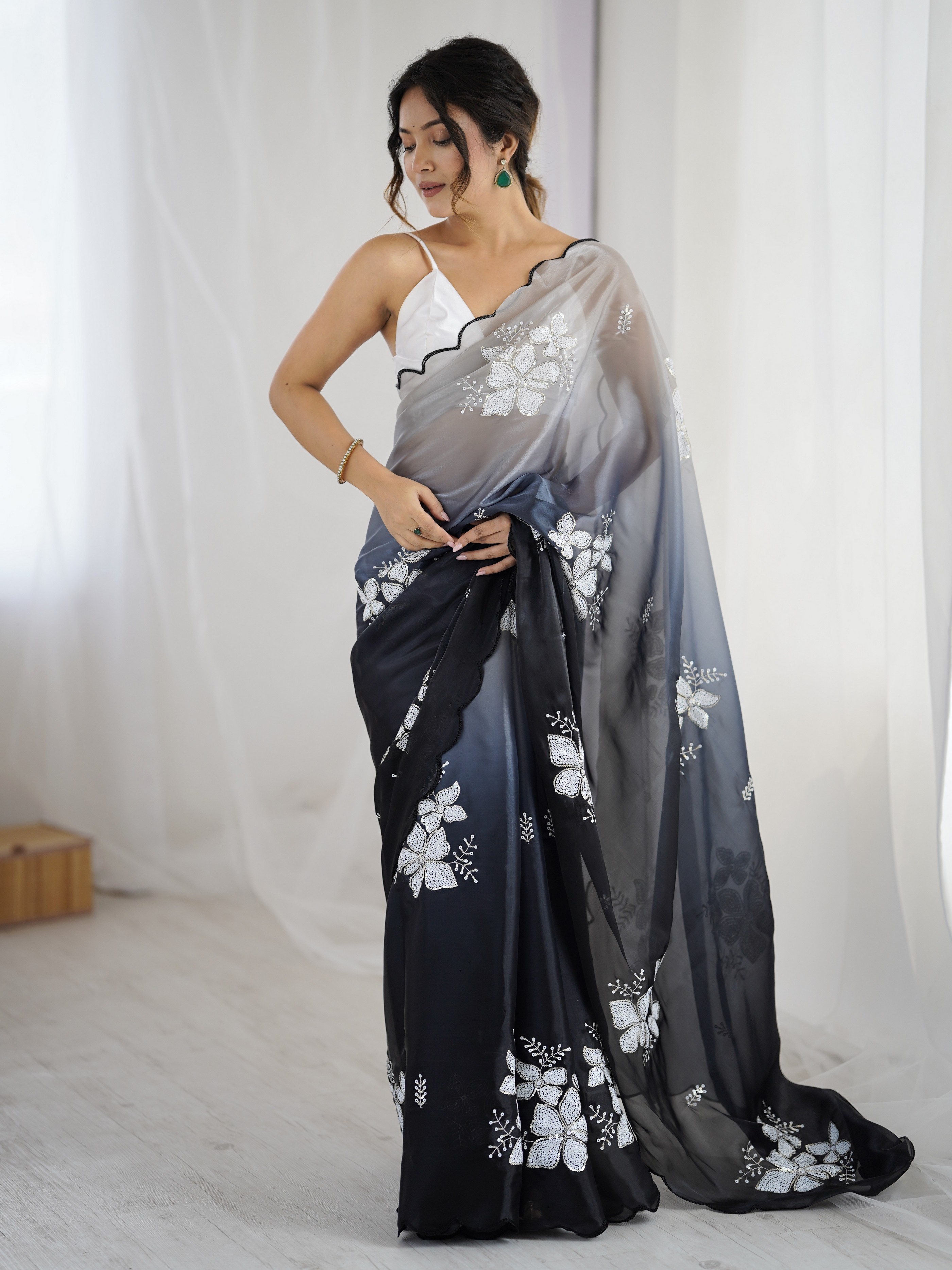 Black Color Glamorous Jimmy Choo Fabric Beautiful Embroidered Saree