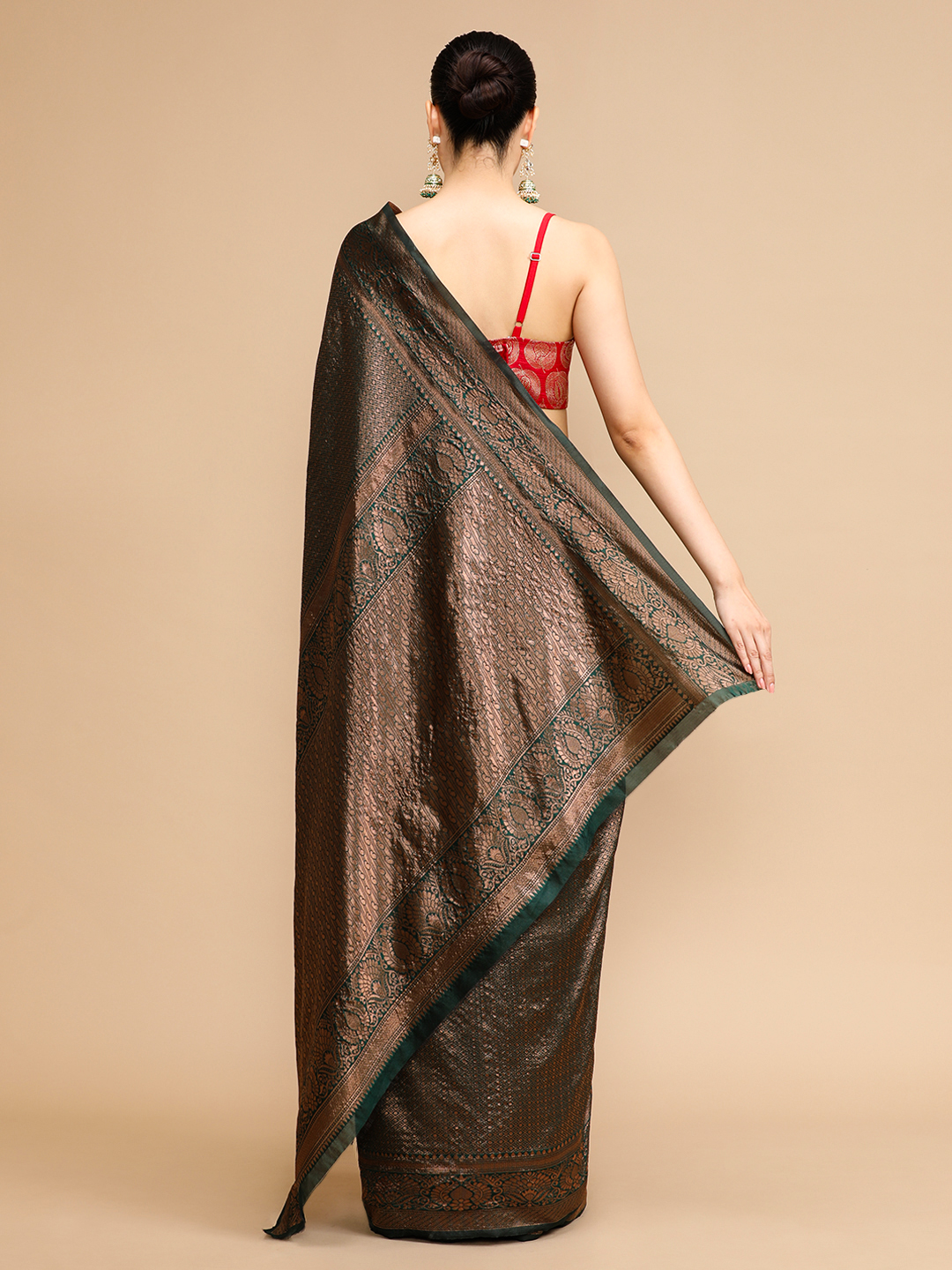 Black Color Lichi Silk Saree Woven Jacquard Designer For Ceremonial Looks