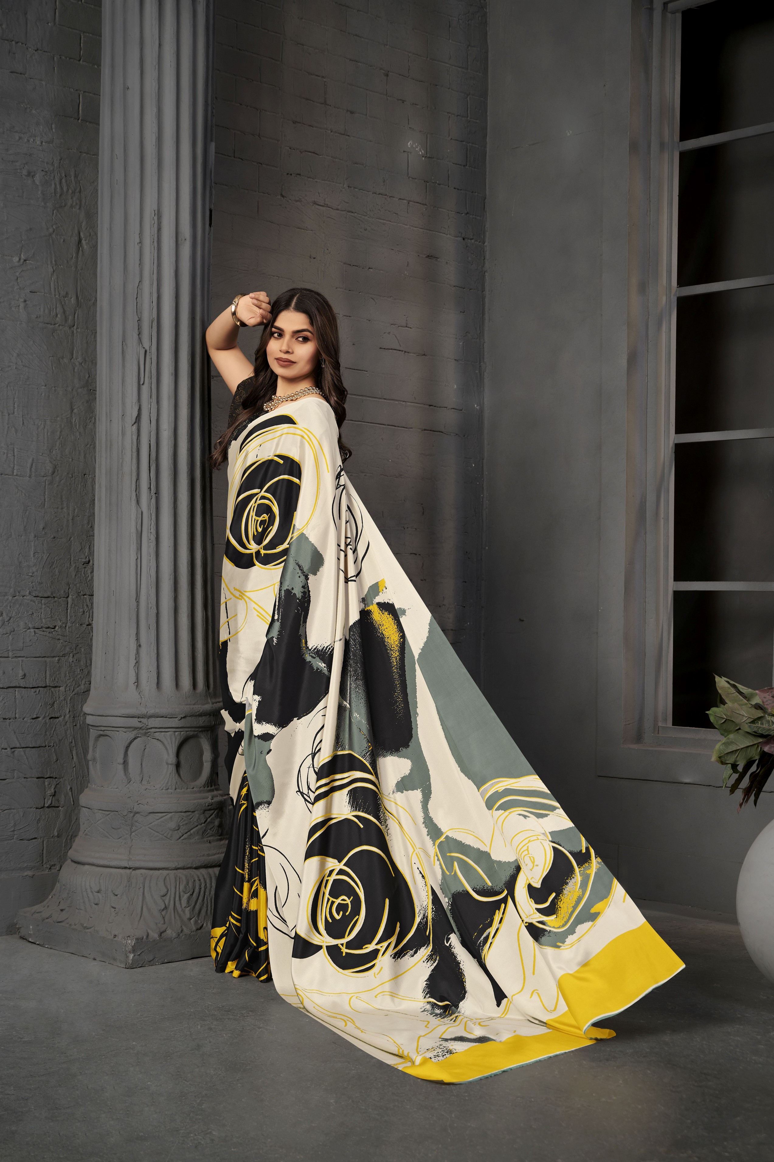 Black Color Malai Crepe Silk Fabric Designer Digital Printed Beautiful Fancy Partywear Saree