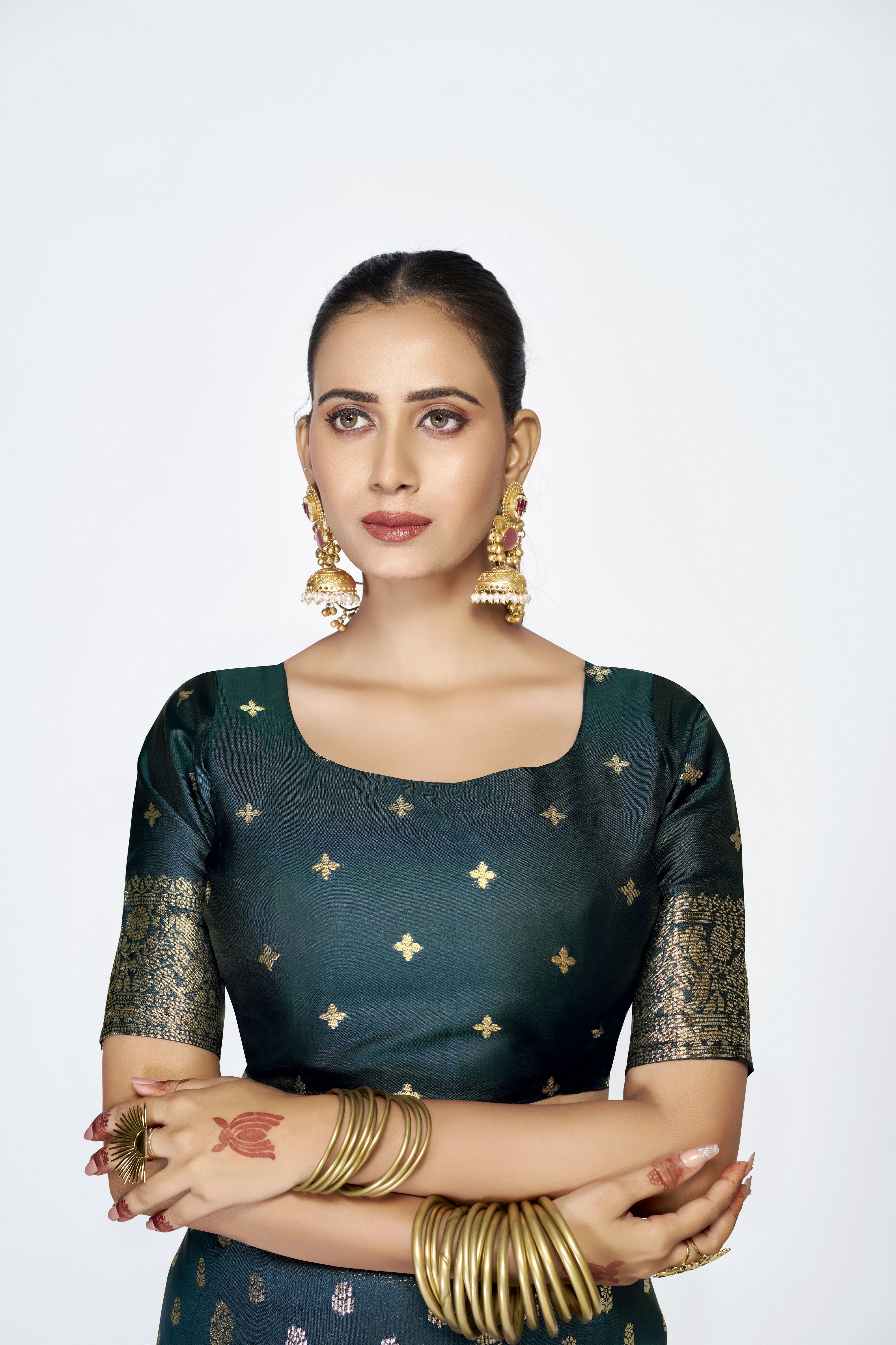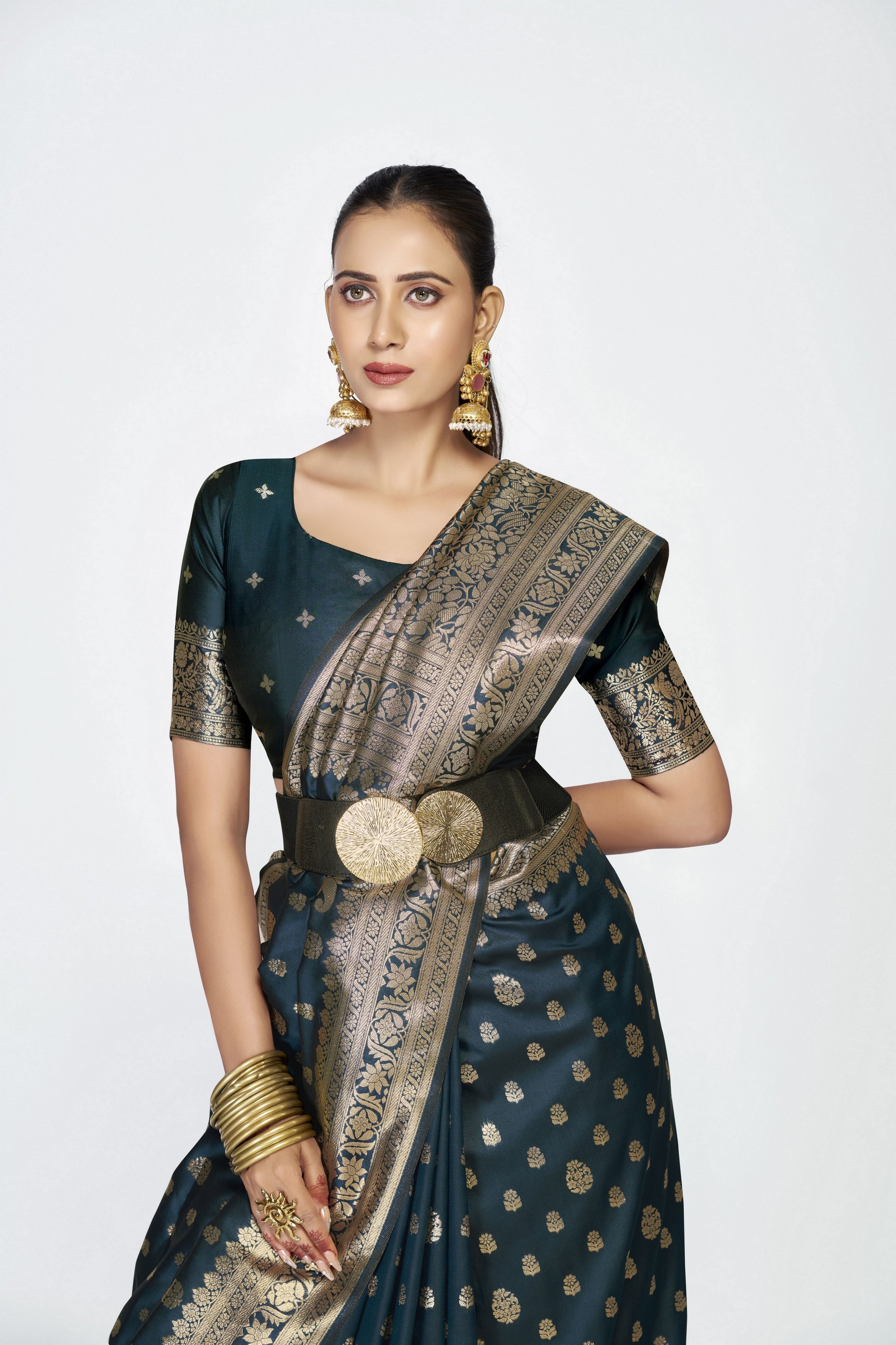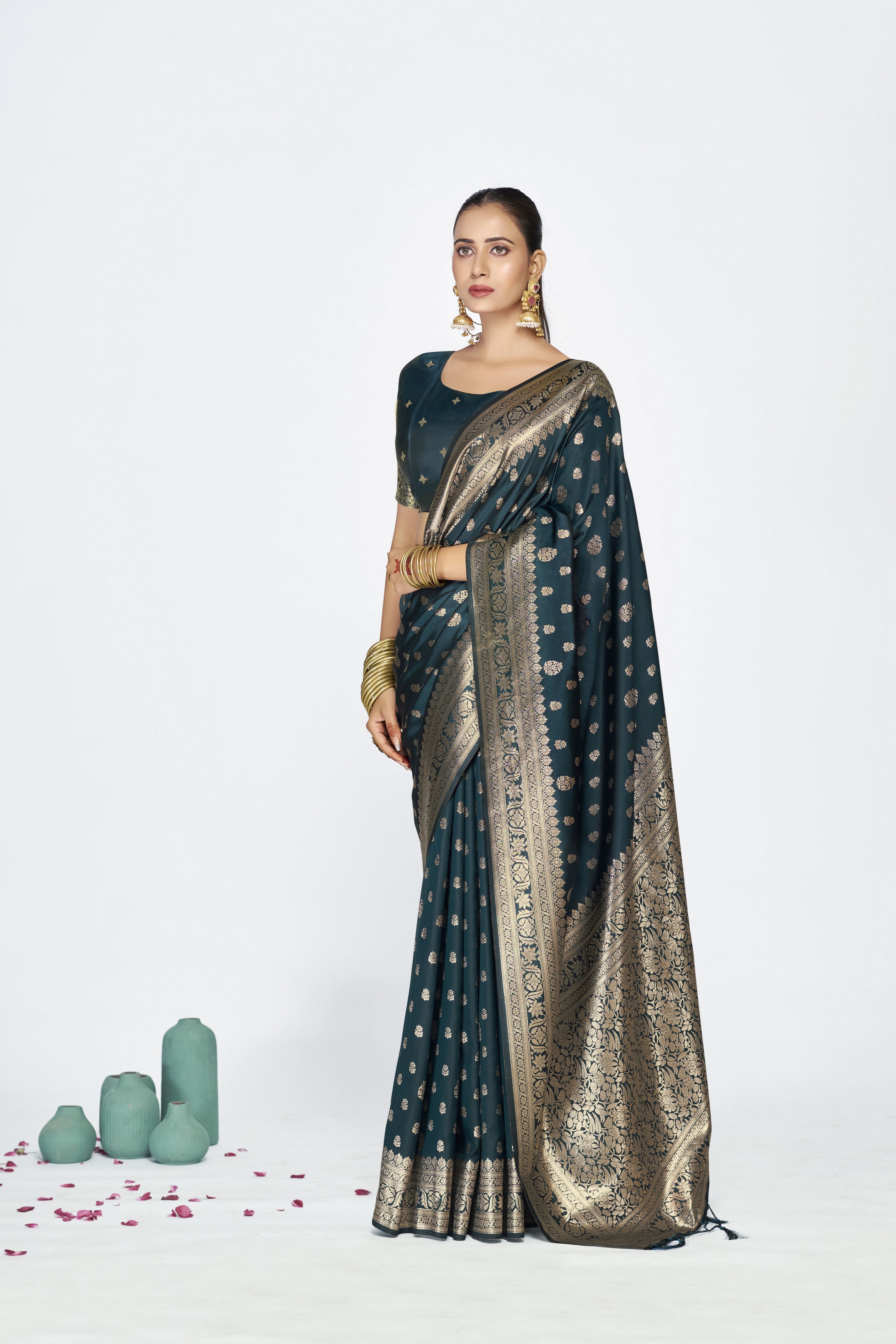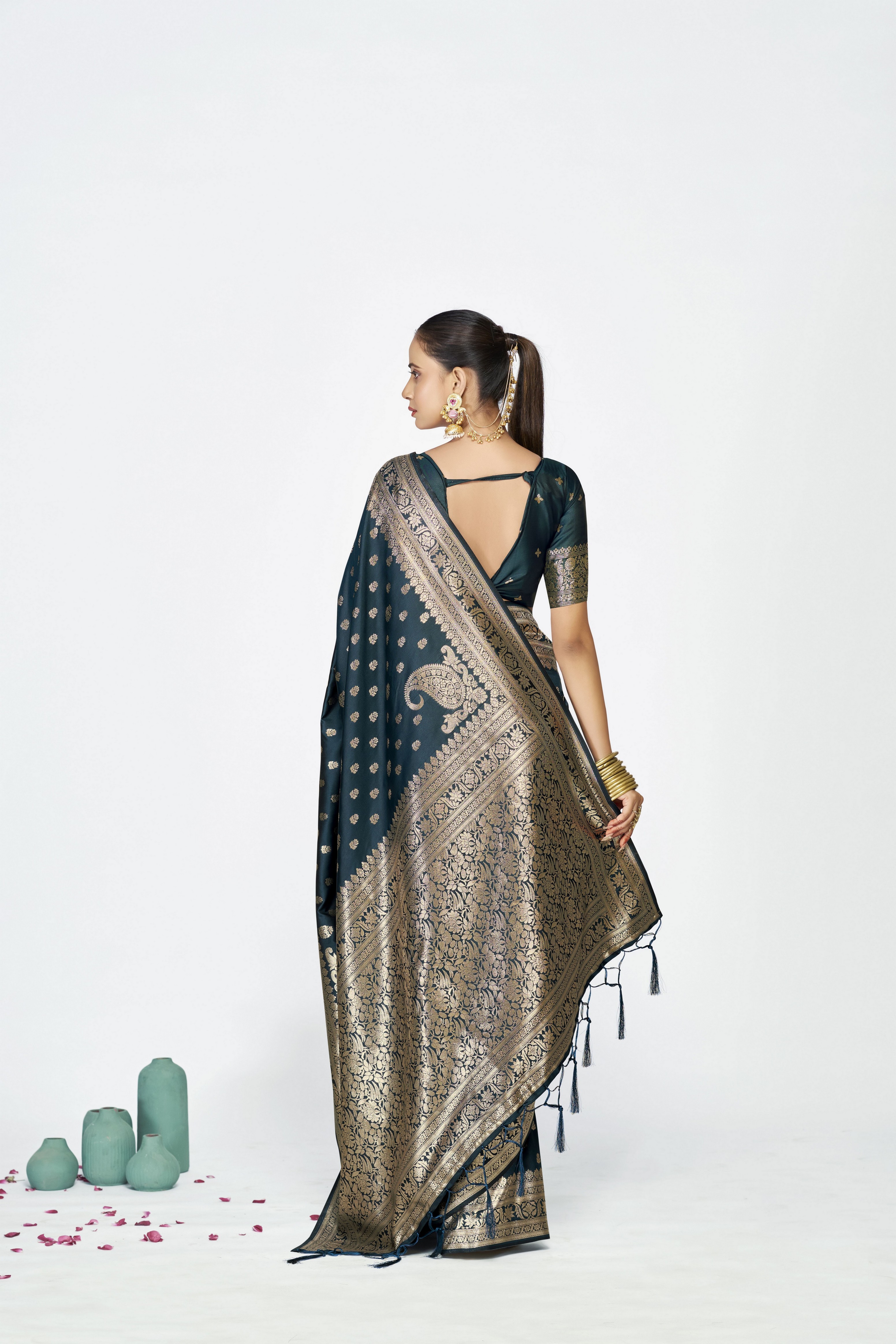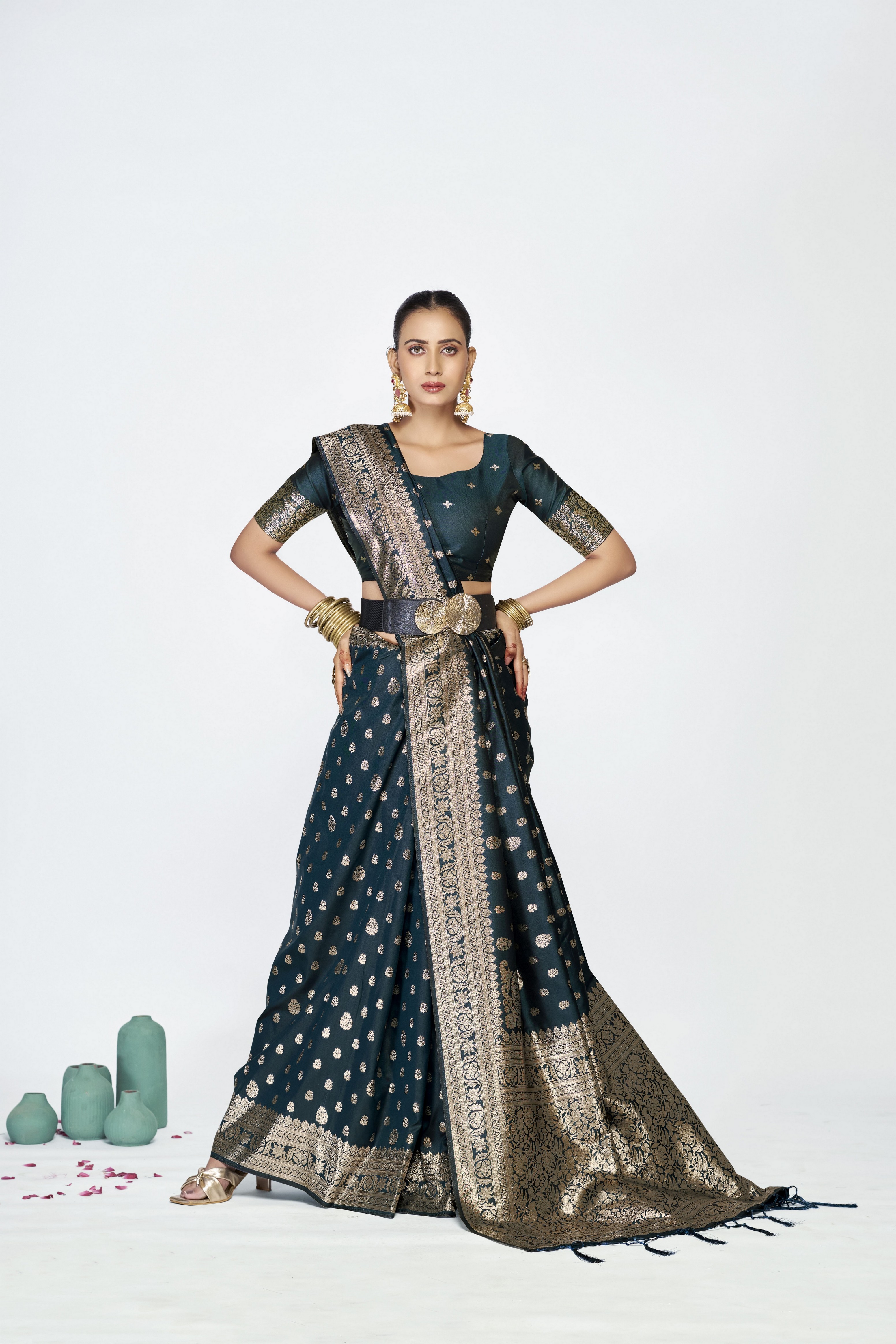 Blue Color Banarasi Silk Fabric Woven Jari Butti Designer Celebrity Fancy Saree