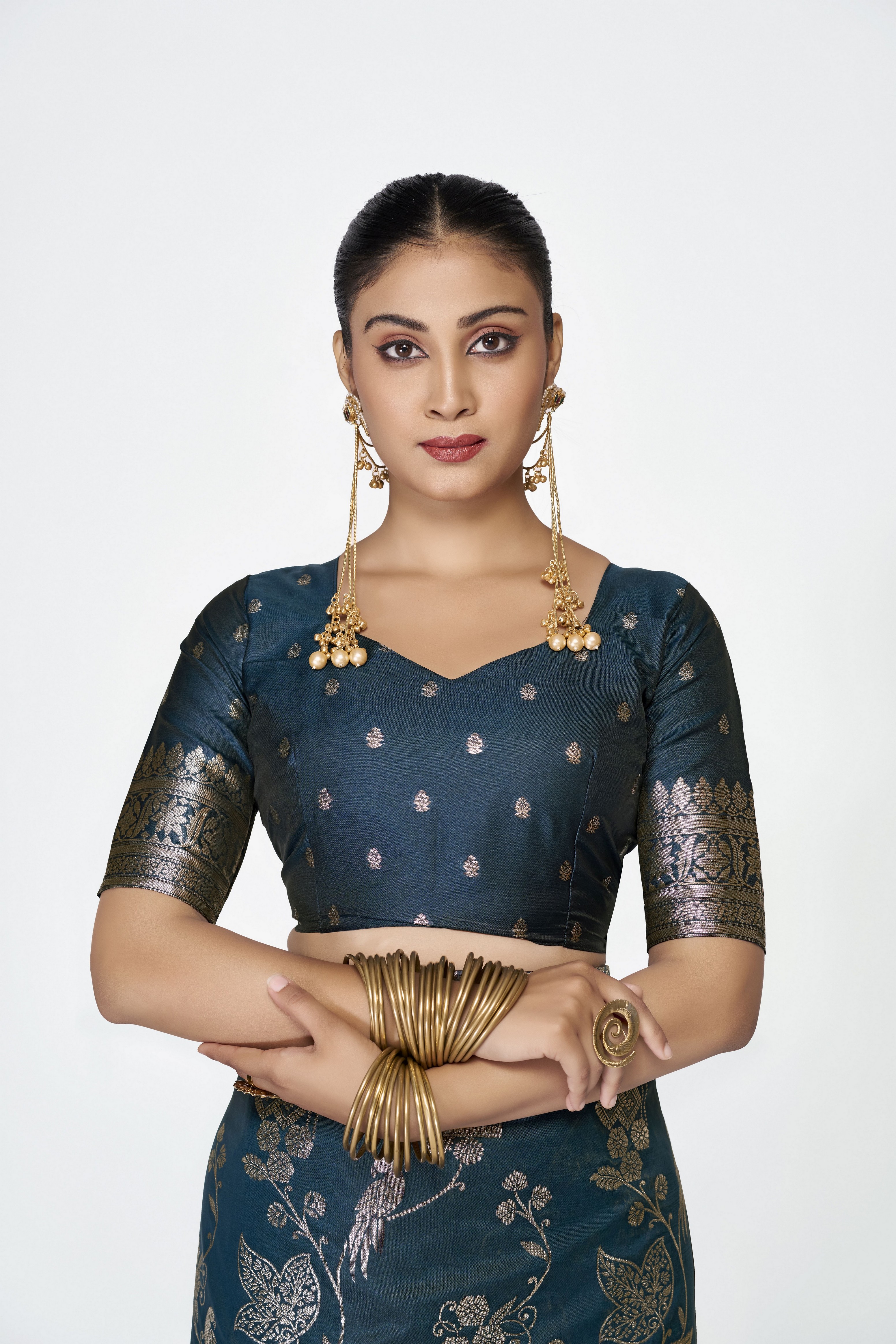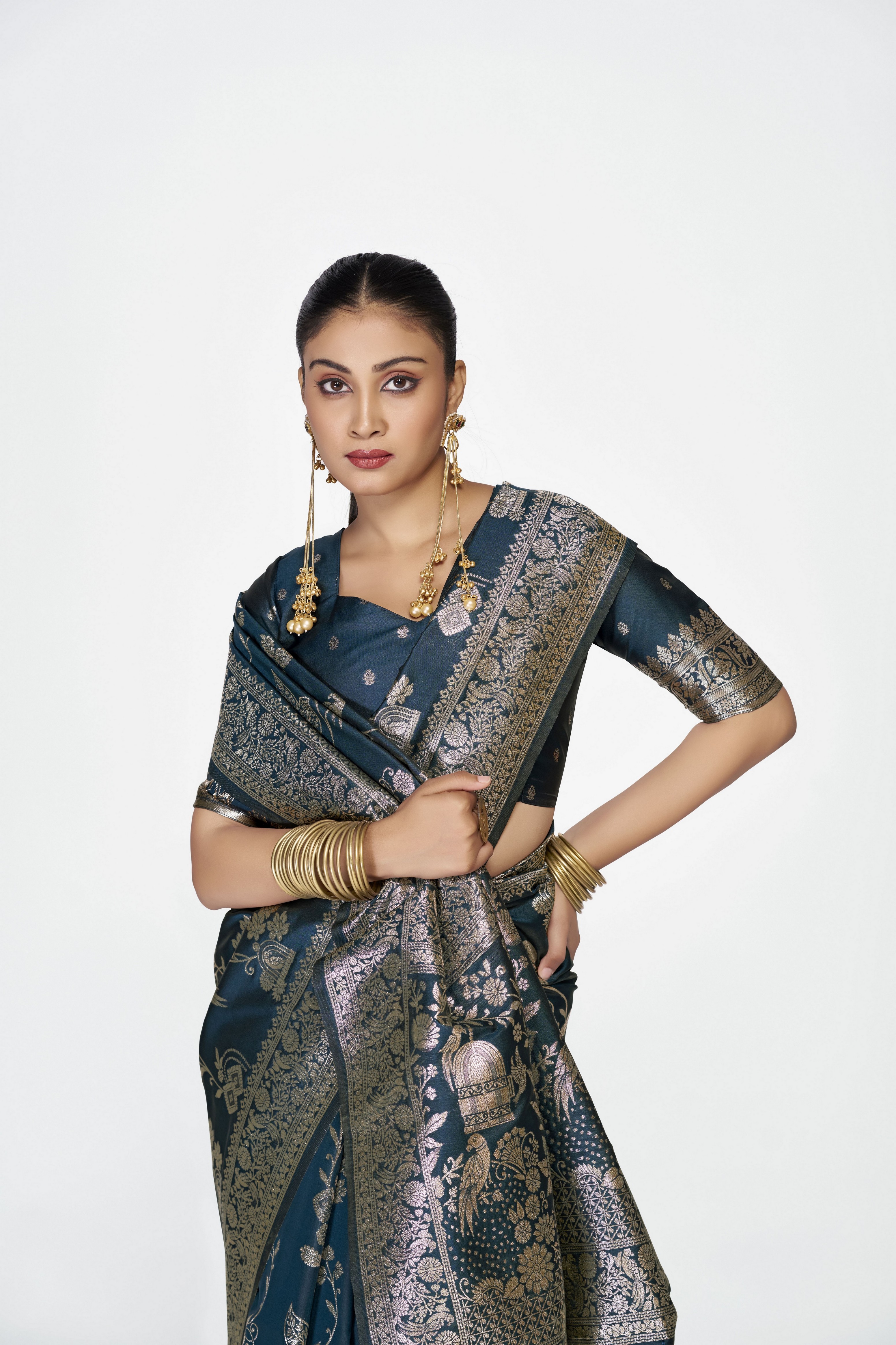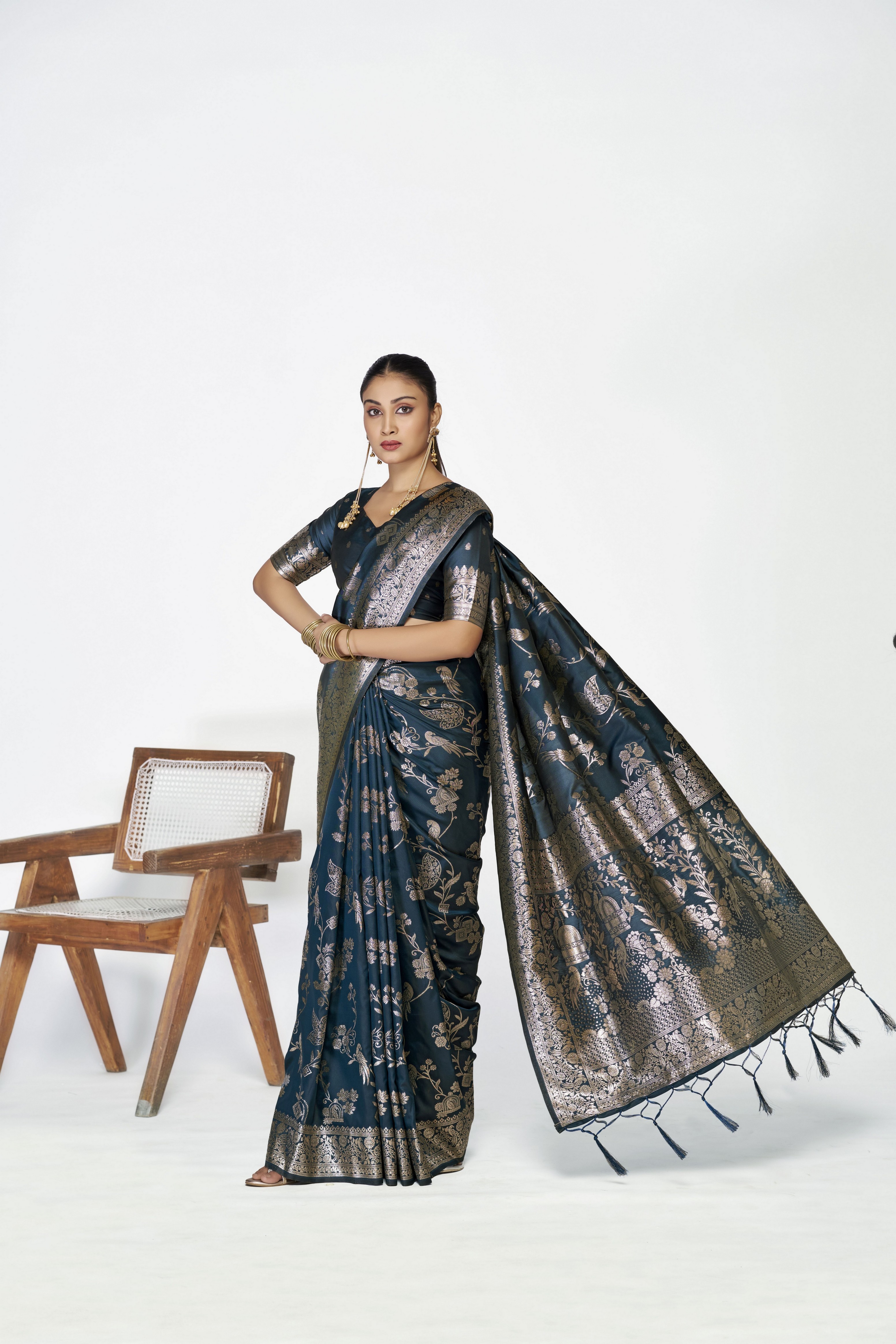 Blue Color Banarasi Silk Fabric Woven Jari Designer Ceremonial Partywear Saree