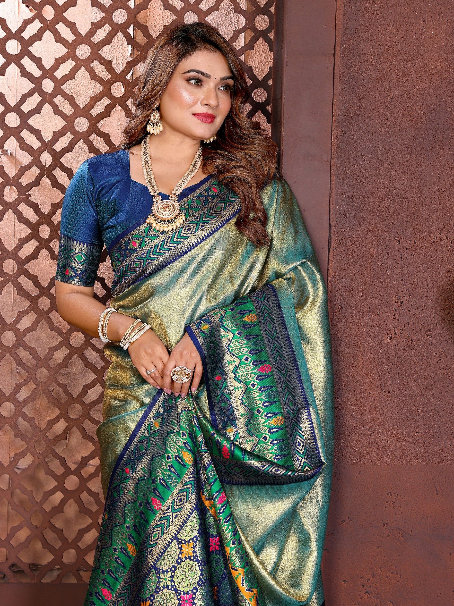 Blue Color Banarasi Tissue Silk Fabric Woven Rich Paithani Designer Ethnic Partywear Saree