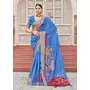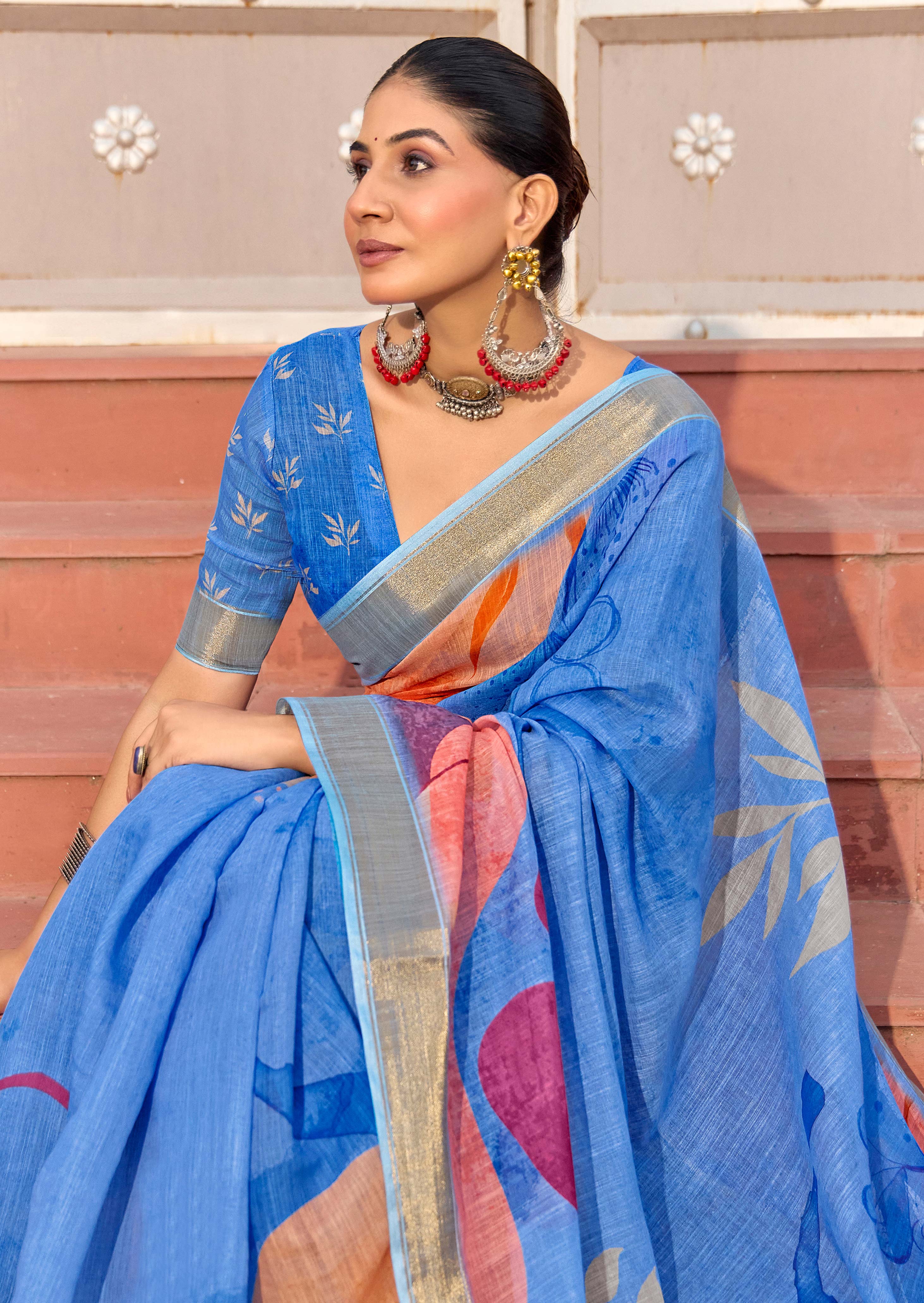 Blue Color Beautiful Linen Silk Fabric Saree With Sophisticated Partywear Saree