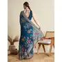 Blue Color Blended Cotton Fabric Wevon With Designer Table Printed Sober Fancy Saree