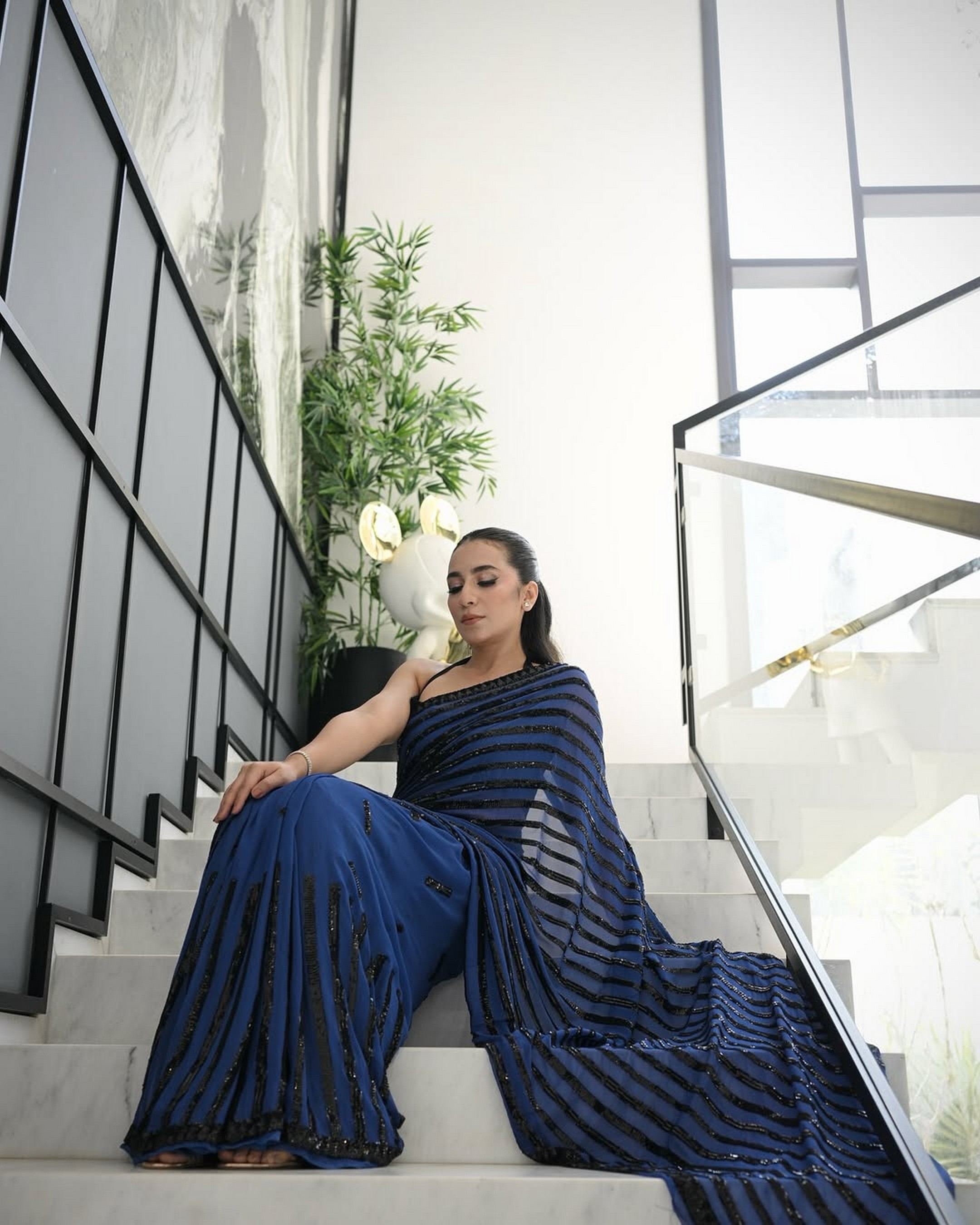 Blue Color Bollywood Style Smart Embroidered Ceremonial Saree