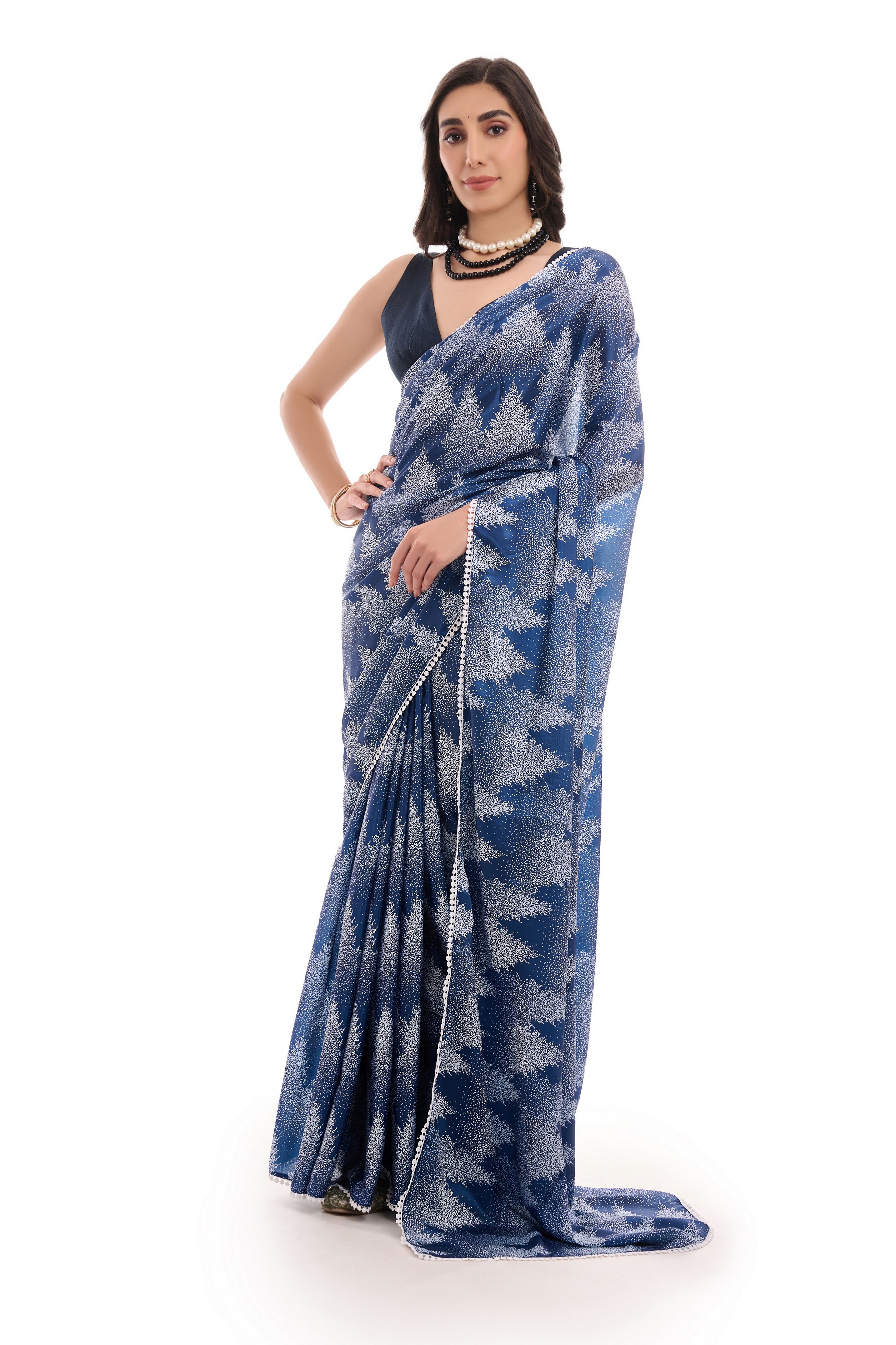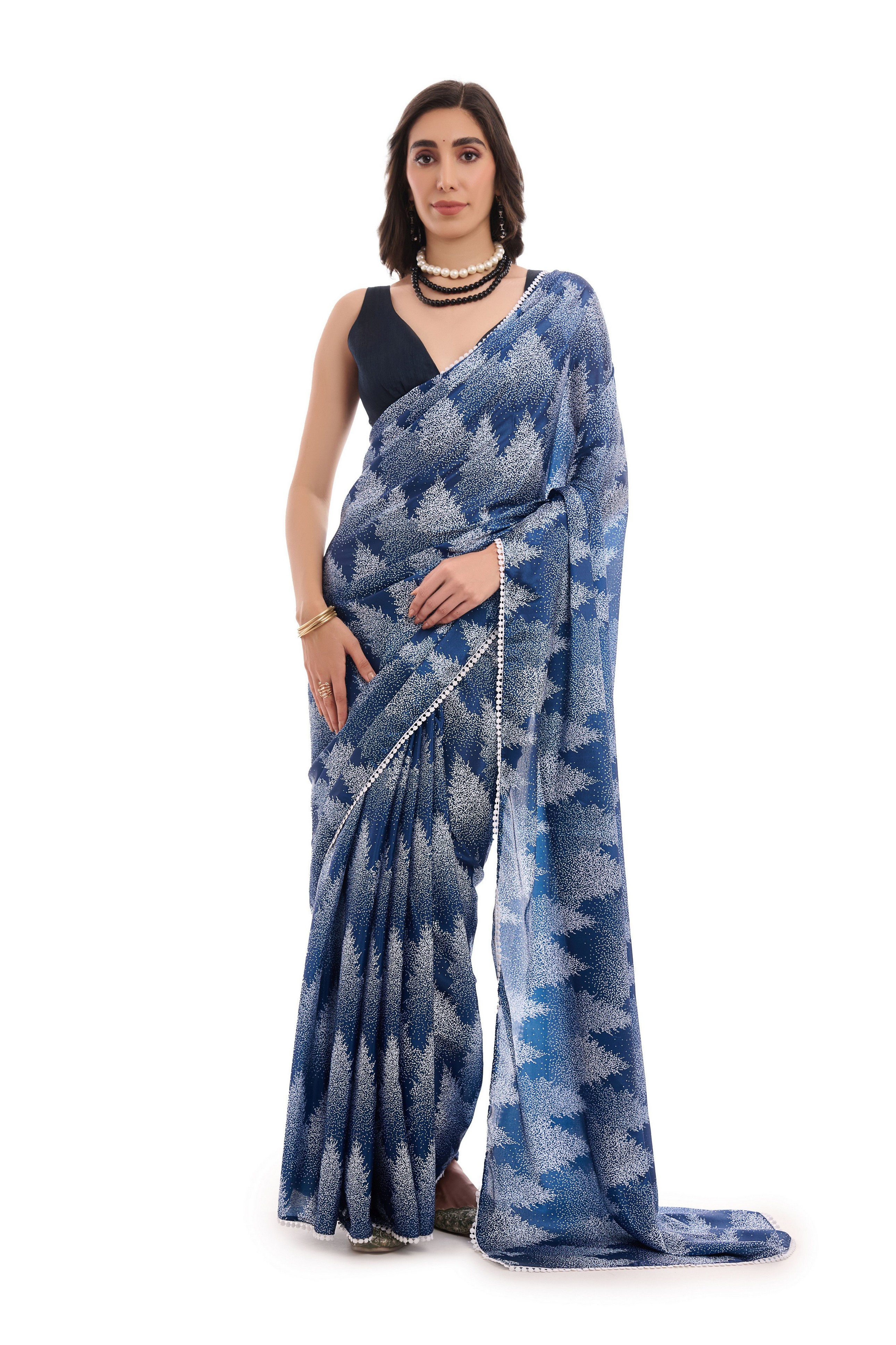 Blue Color Chinon Fabric Designer Digital Printed Ready To Wear Saree