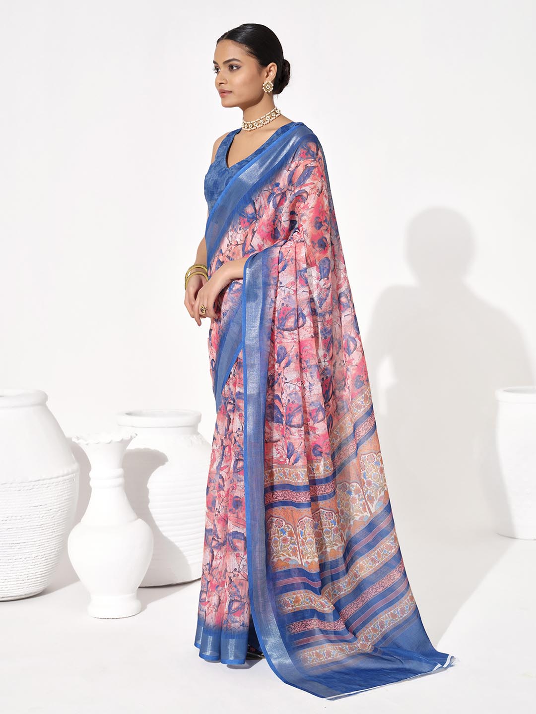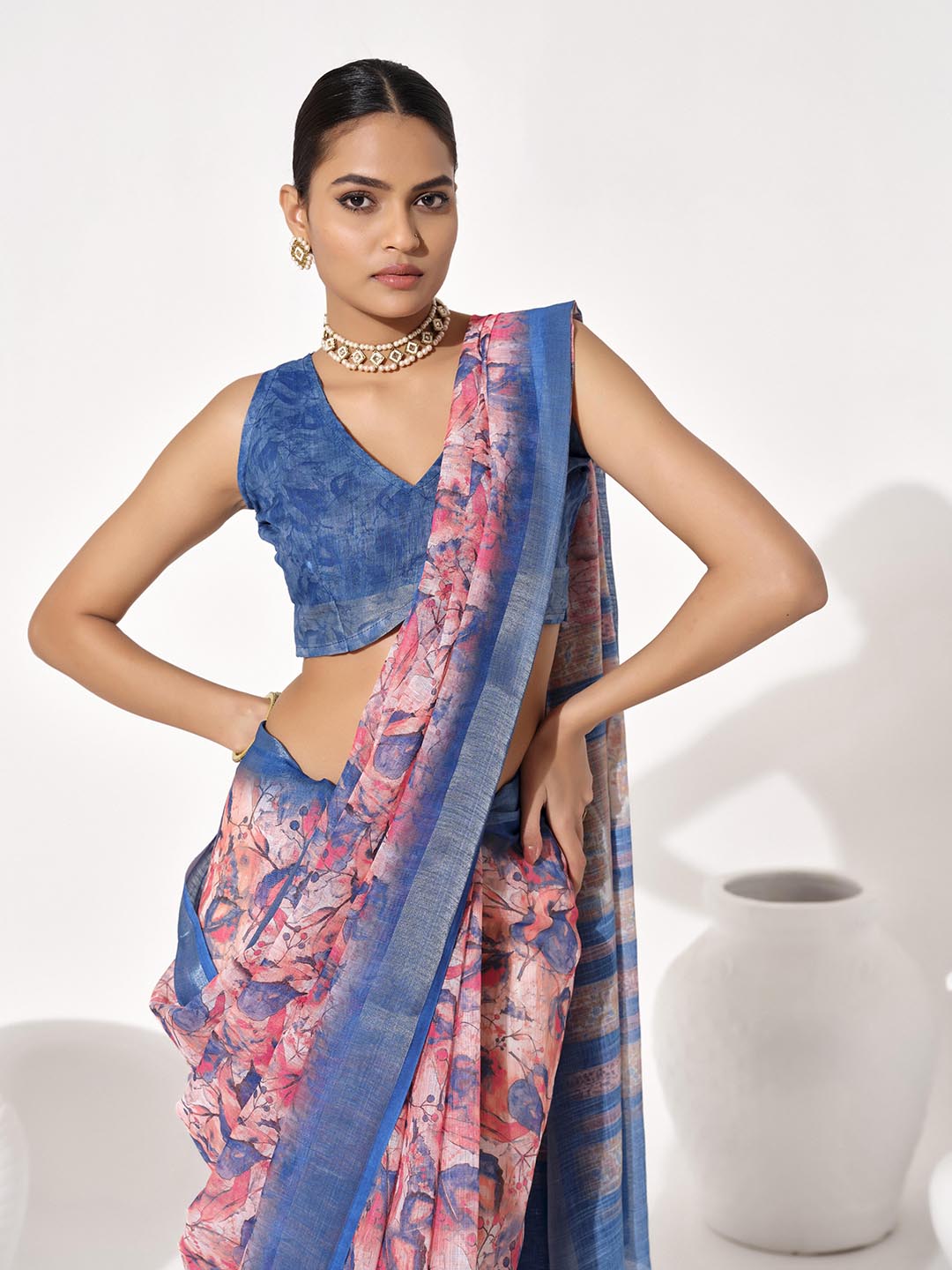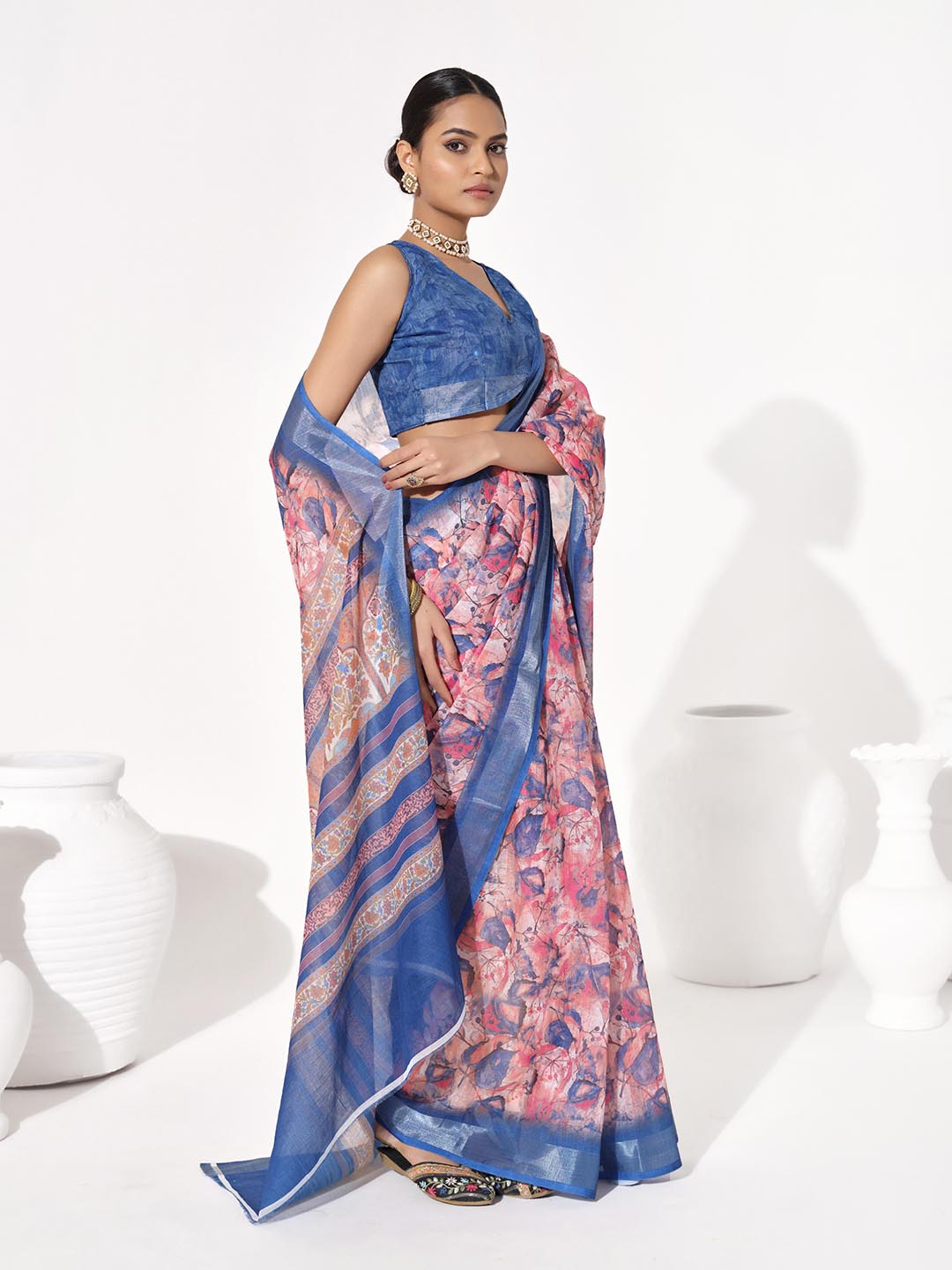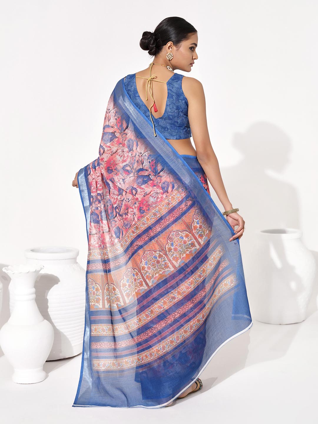 Blue Color Cotton Blend Girlie Designer Printed Saree For Rich Sophisticated Looks