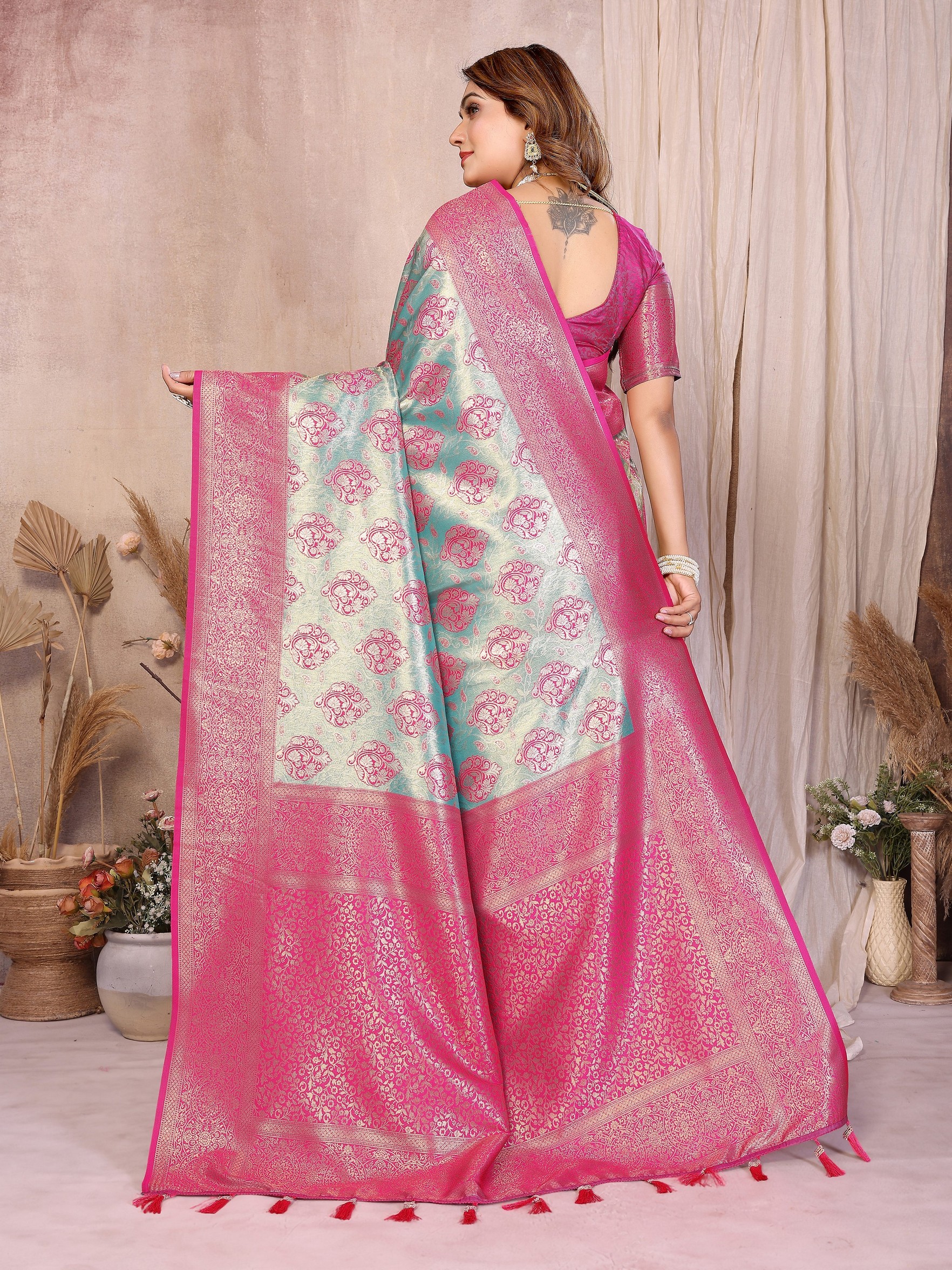 Blue Color Heavy Rich Banarasi Tissue Silk For Ceremonial Traditional Looks
