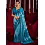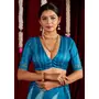 Blue Color Ikkat Silk Fabric Designer Zig Zag Printed Traditional Party Looks Saree