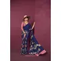 Blue Color Malai Crepe Silk Fabric Designer Digital Printed Ceremonial Partywear Saree
