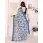 Blue Color Moss Satin Patta Designer Flower Printed Ceremonial Saree