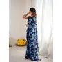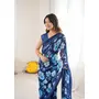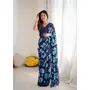 Blue Color Moss Satin Patta Stylish Partywear Saree