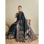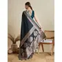 Blue Color Satin Silk Fabric Woven Designer Partywear Saree