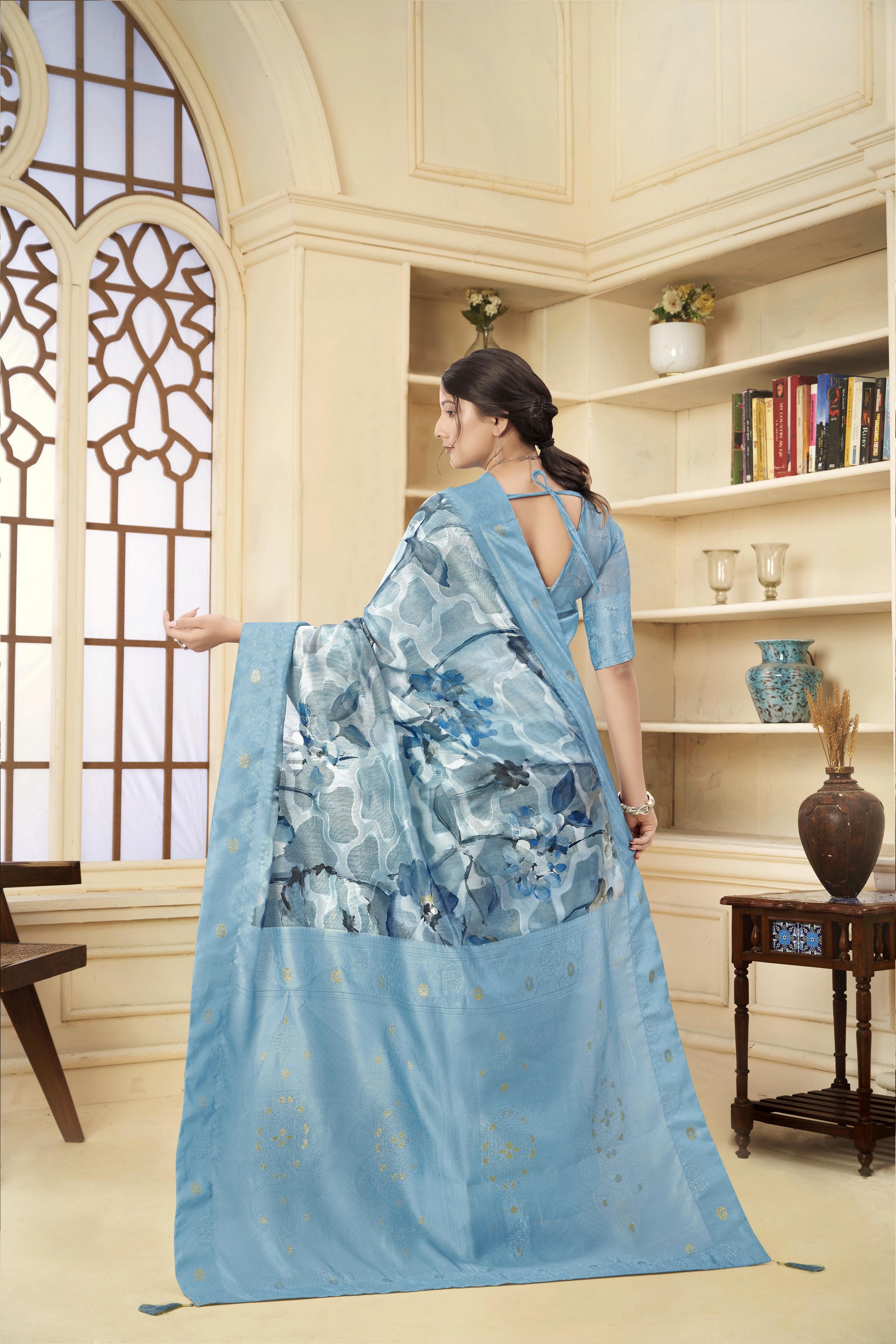 Made using high-quality fabrics such as silk, soft silk, georgette, organza, chiffon, crepe, linen, cotton blends ...etc .