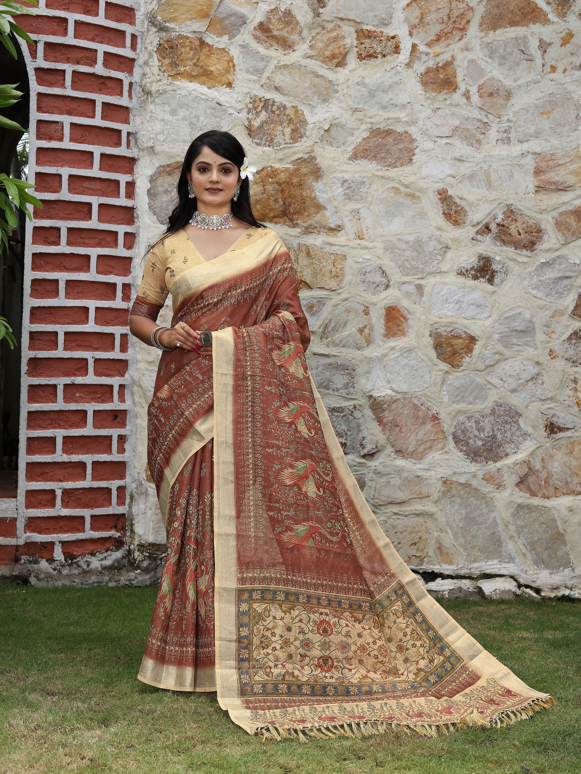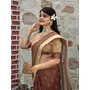 Brown Color Cotton Shimmer Fabric Designer Printed Ethnic Girlie Saree