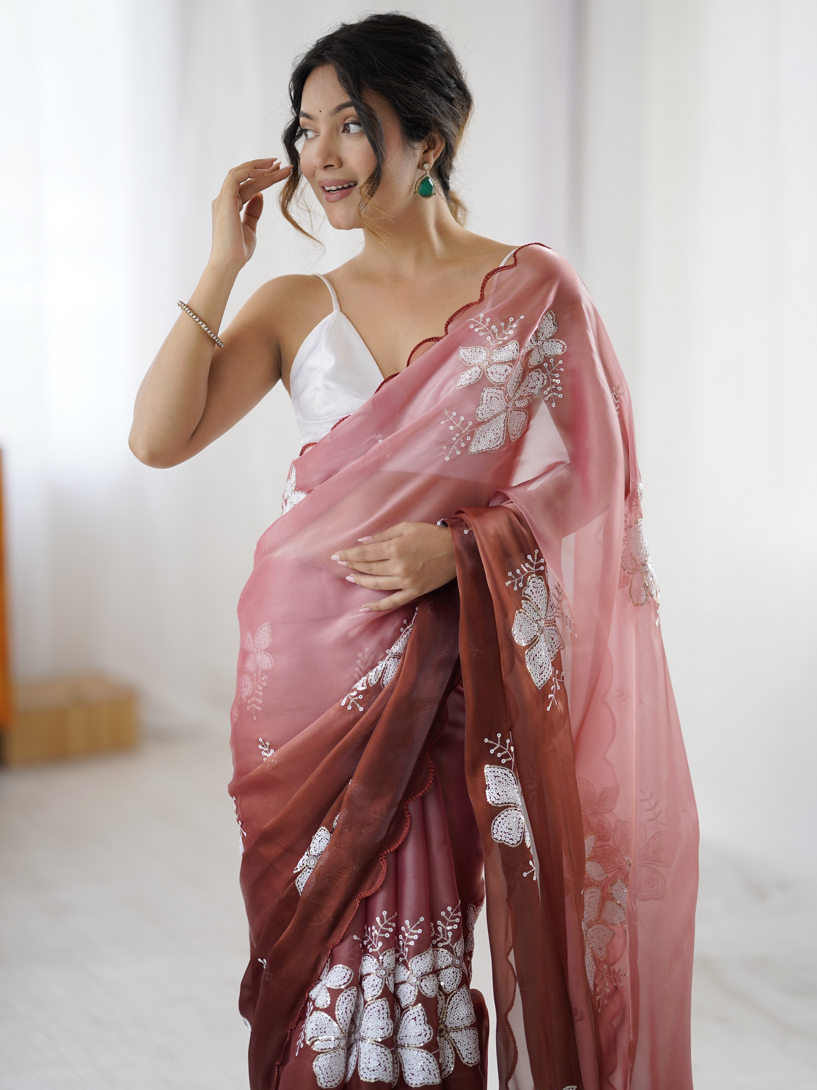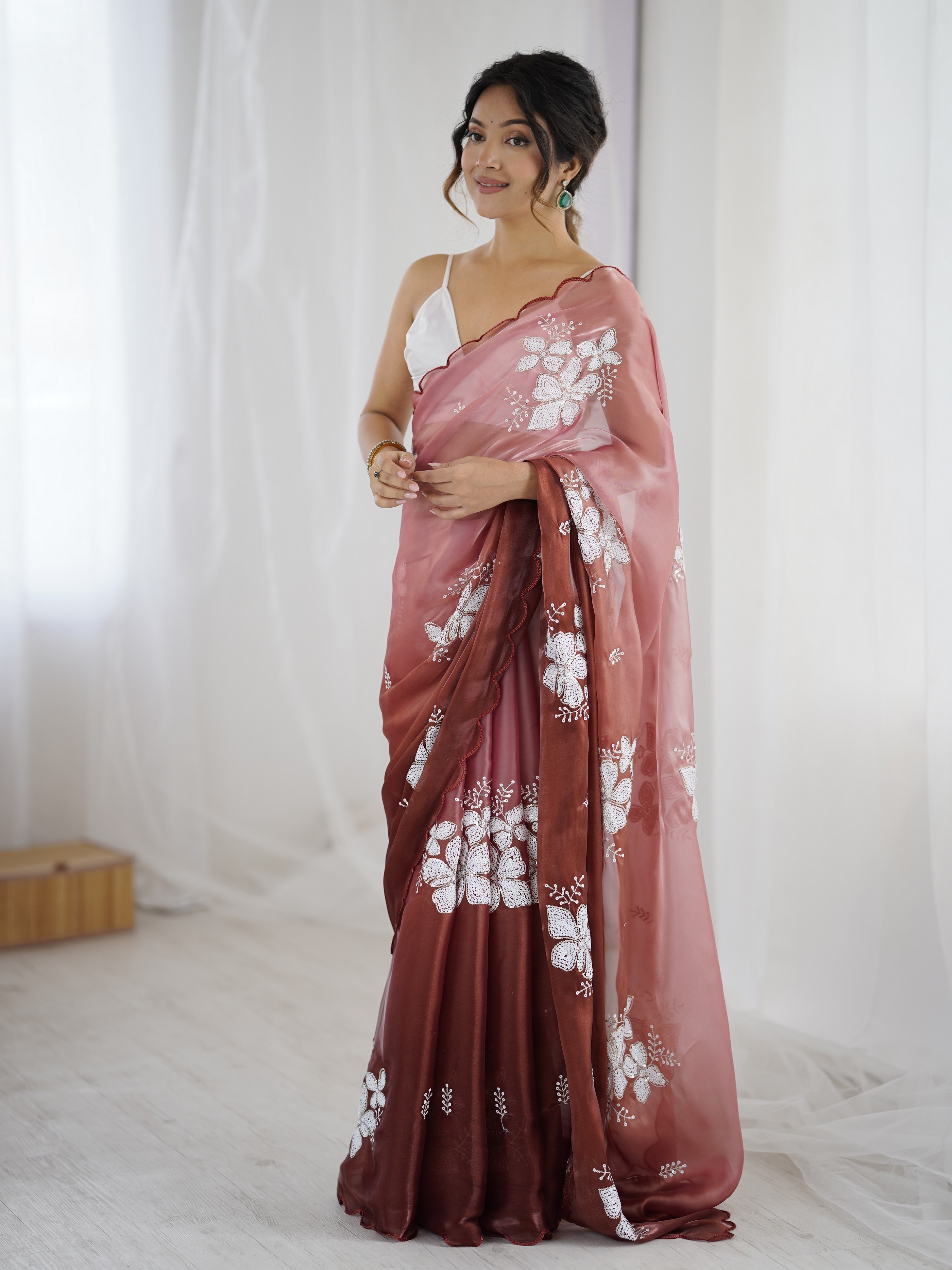 Brown Color Glamorous Jimmy Choo Fabric Beautiful Embroidered Saree
