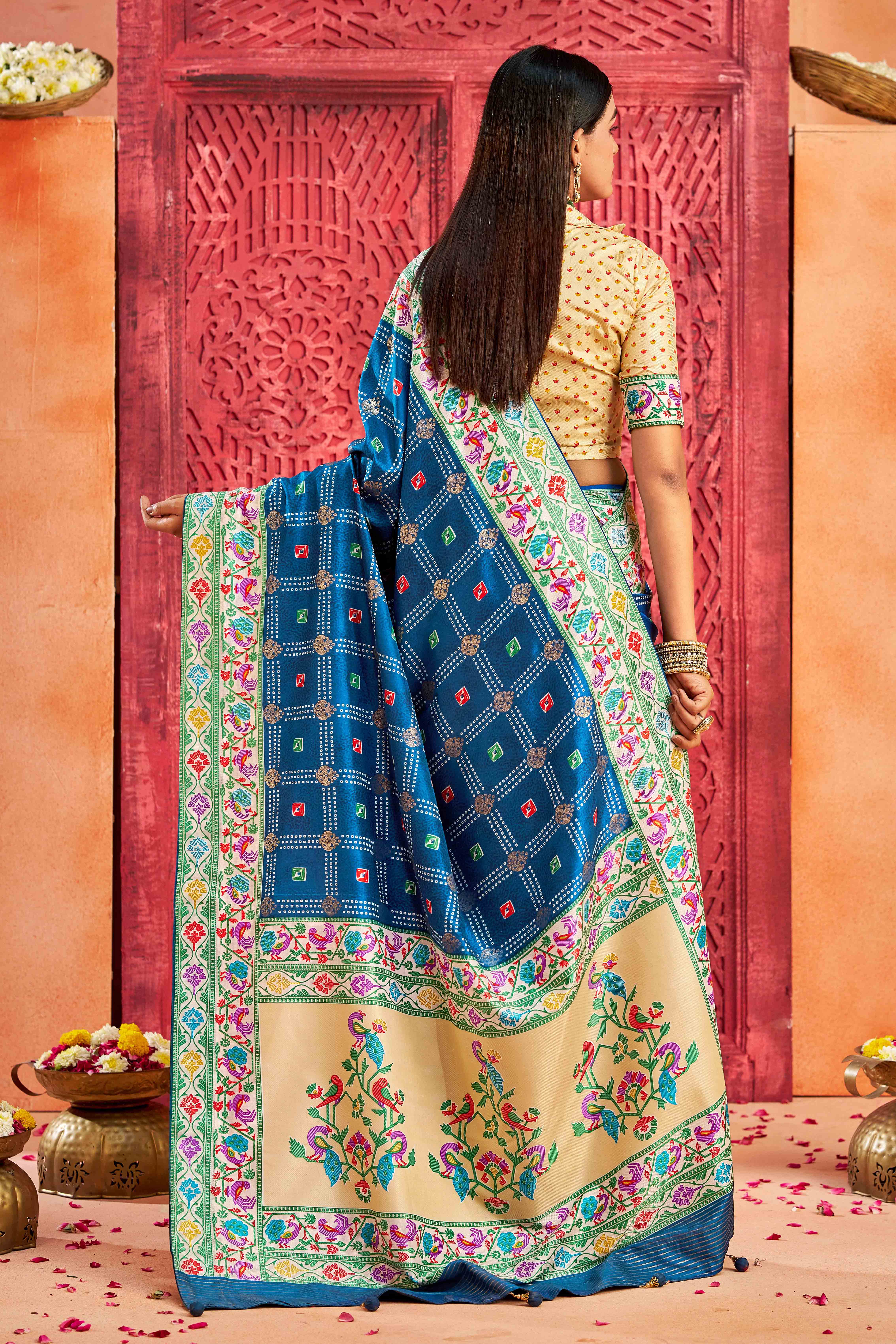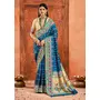 Cobalt Blue Color Velvet Tussar Silk Fabric Partywear Saree With Paithani Pallu And Traditional Ghatchola Print