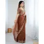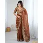 Coffee Color Fendy Chiffon Fabric Designer Embroidered Saree For Ceremonial Looks