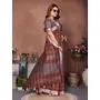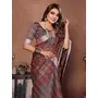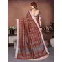 Coffee Color Linen Cotton Fabric Woven Checks Designer Trendy Ethnic Saree