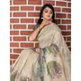 Cream Color Cotton Shimmer Fabric Smart Printed Saree With Woven Border