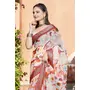 Cream Color Linen Cotton Fabric Woven Border Designer Printed Saree