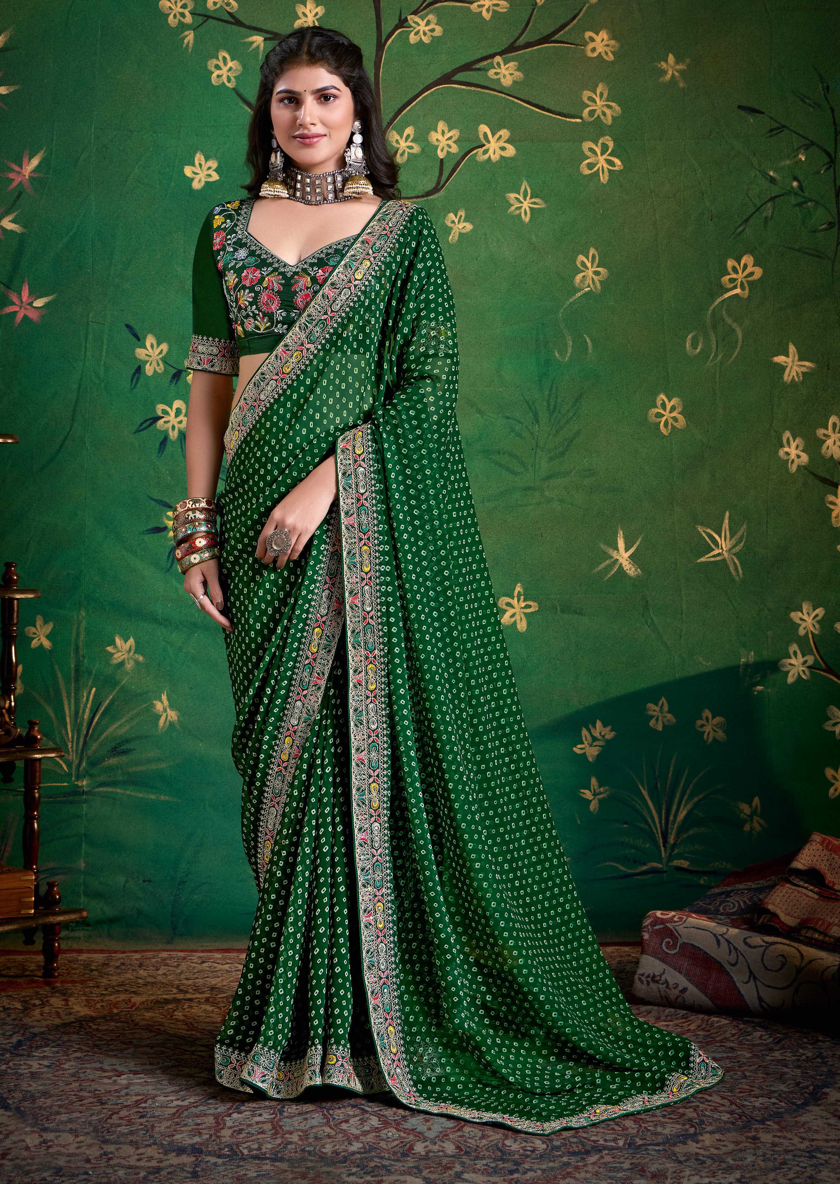 Dark Green Color Faux Fabric Festive Special Partywear Saree