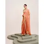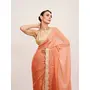 Embellished Sequinned Work Peach Color Satin Fabric Rich Ceremonial Saree