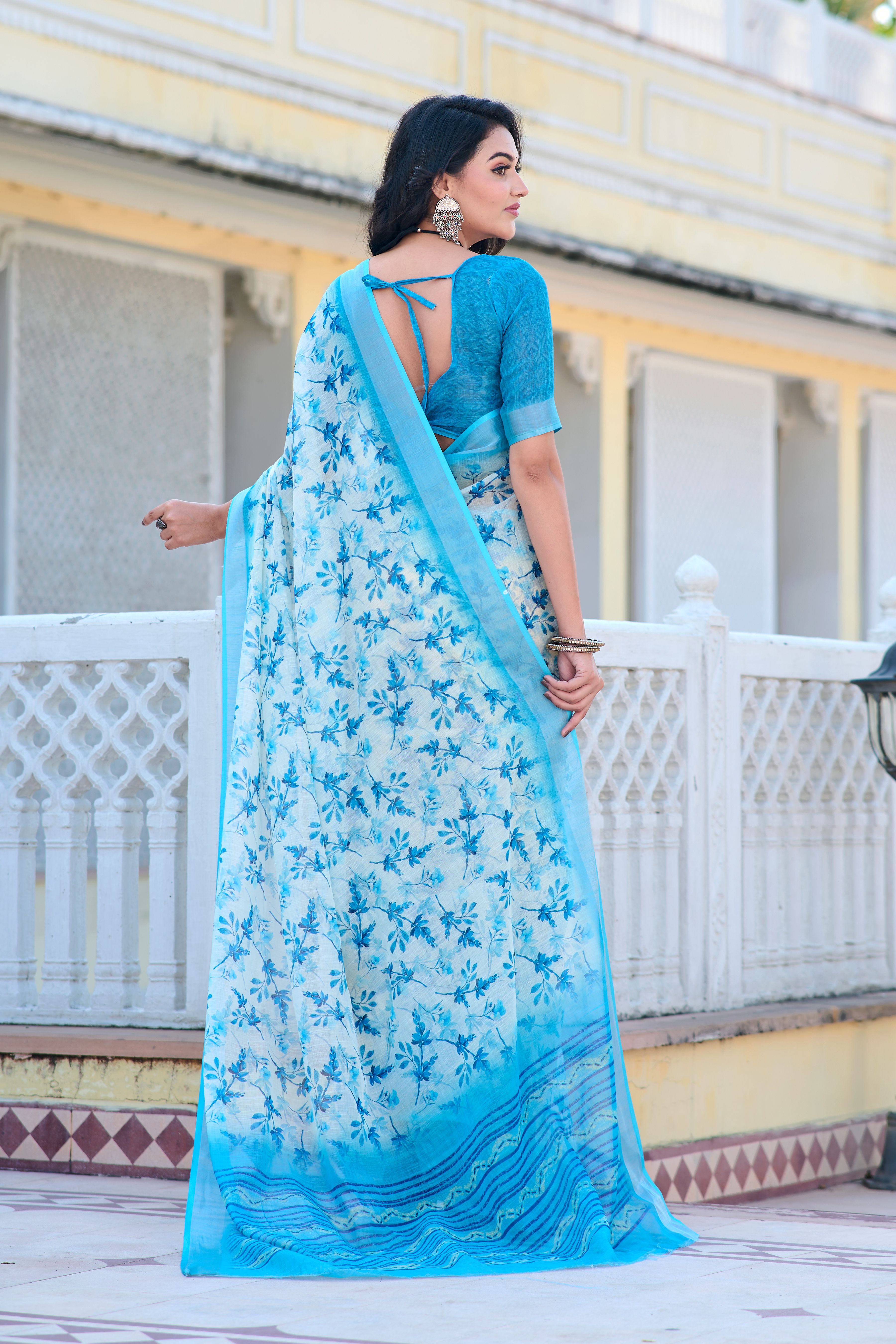 Garb These Festive Saree in Fine Colored.These Saree Are Linen Cotton And Blouse is Fabricated On Linen Cotton Pair.Its Beautified With Woven Jari Border With Designer Digital Printed.
