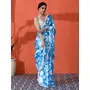 Firozi Color Chinon Fabric Designer Digital Printed Saree For Ceremonial Looks