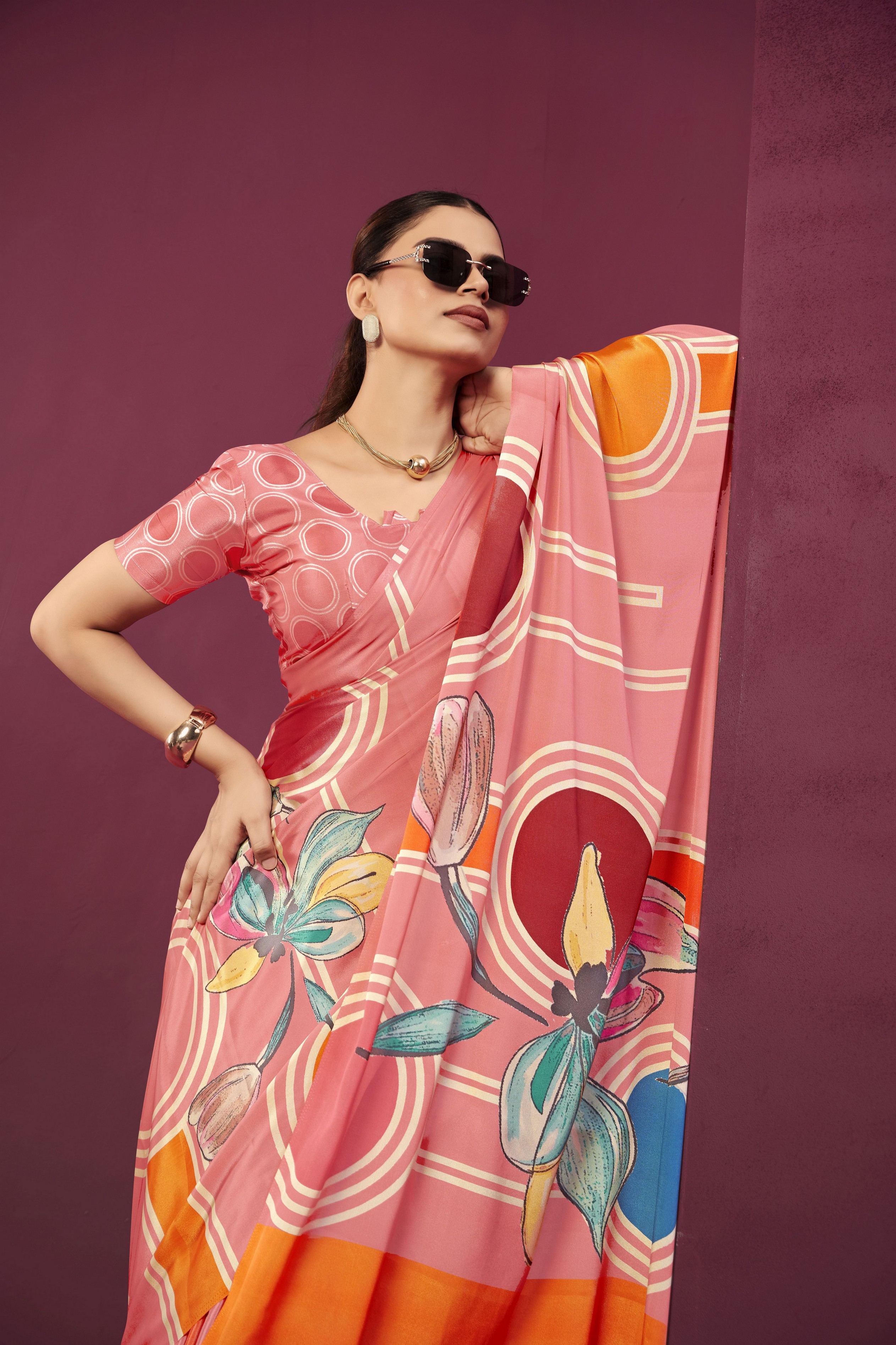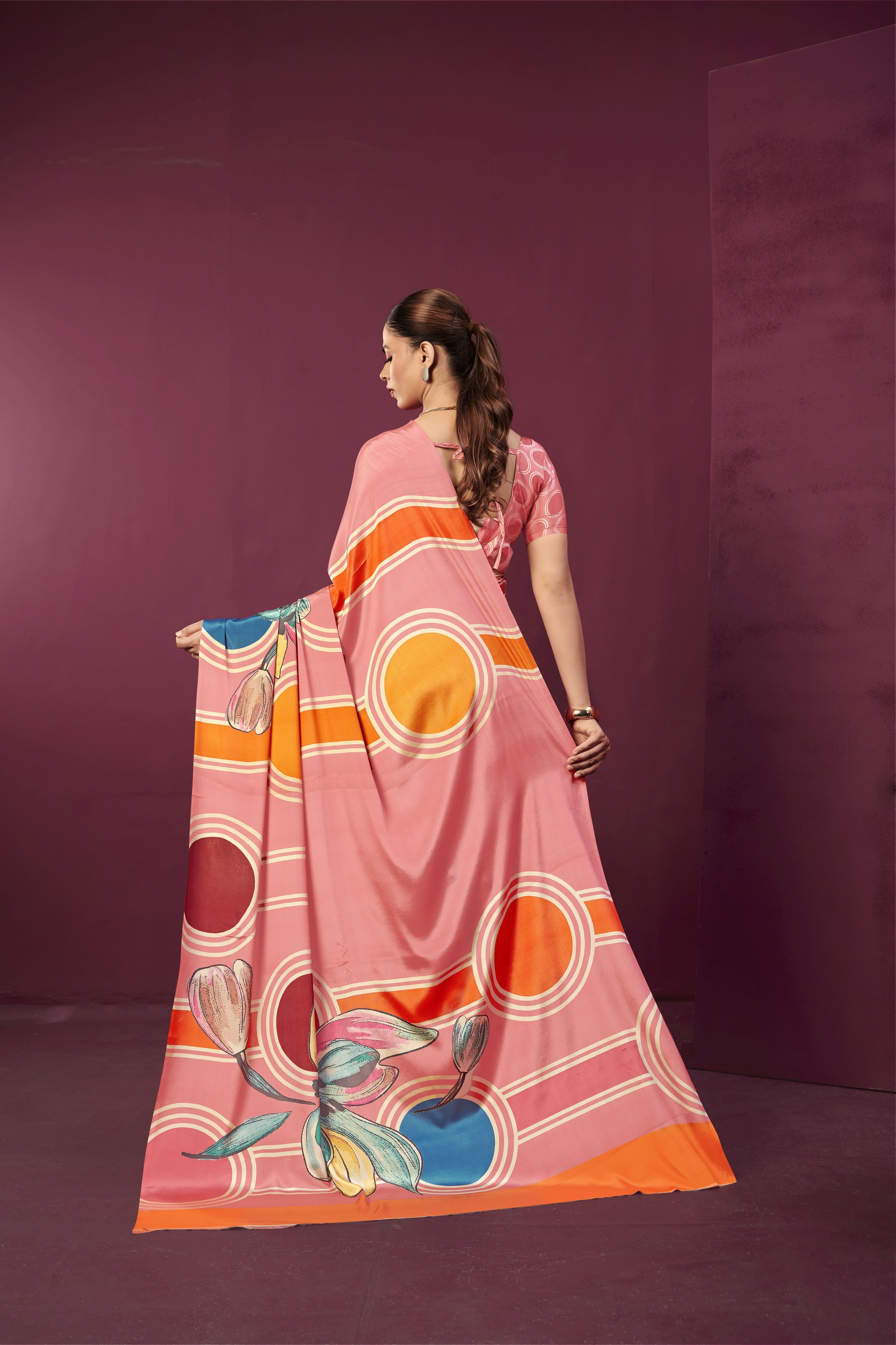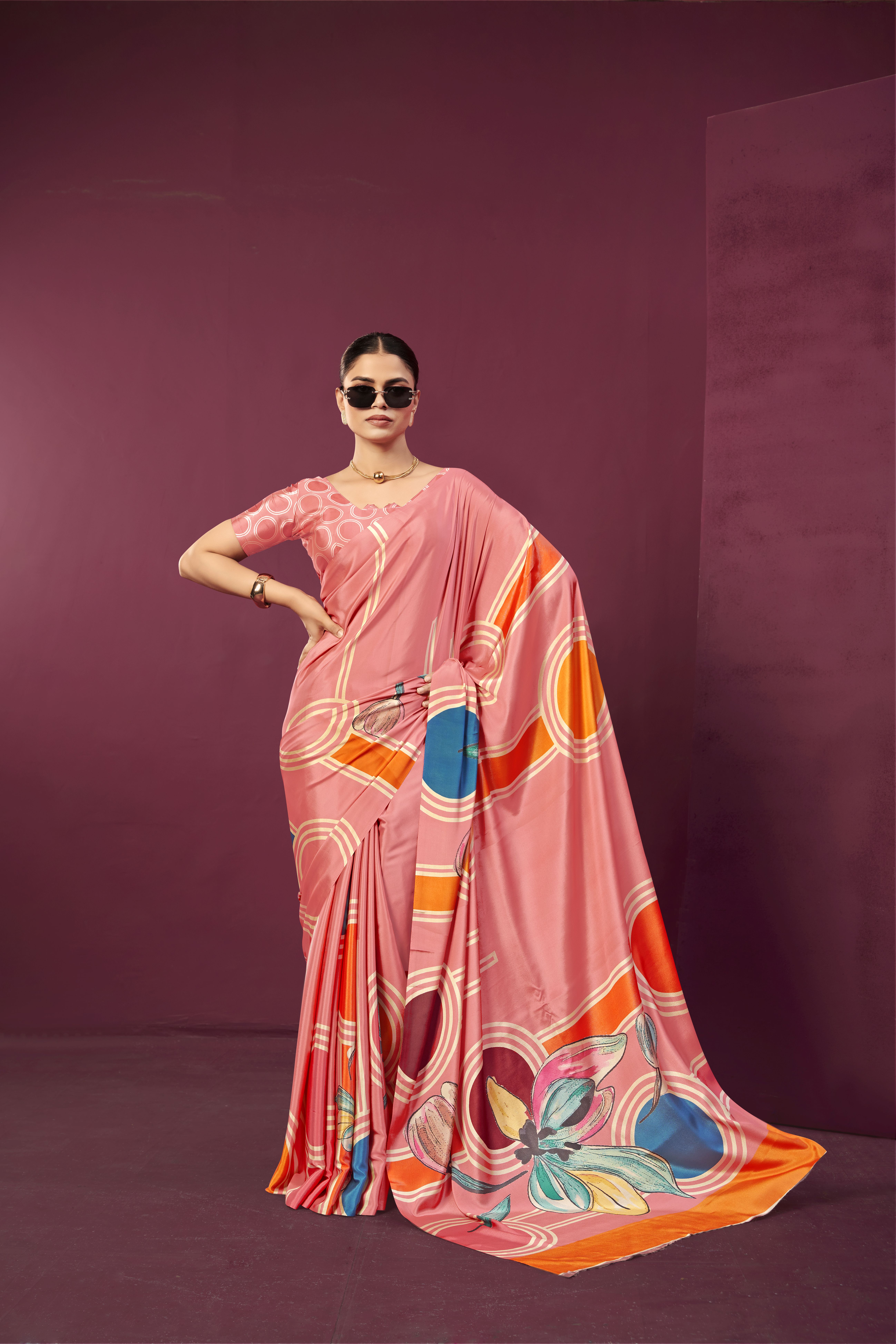 Gajri Color Malai Crepe Silk Fabric Designer Digital Printed Ceremonial Partywear Saree