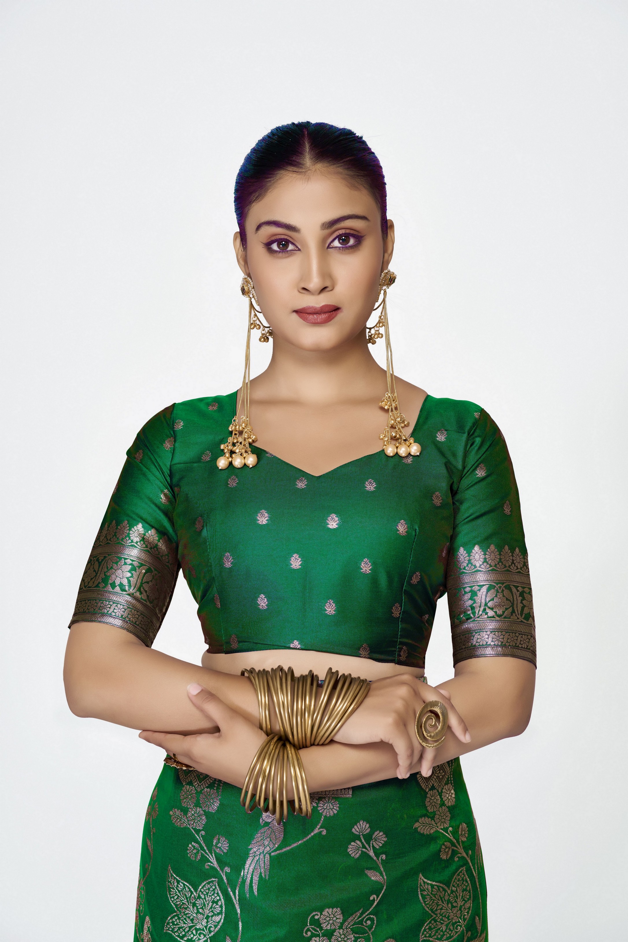 Green Color Banarasi Silk Fabric Woven Jari Designer Ceremonial Partywear Saree