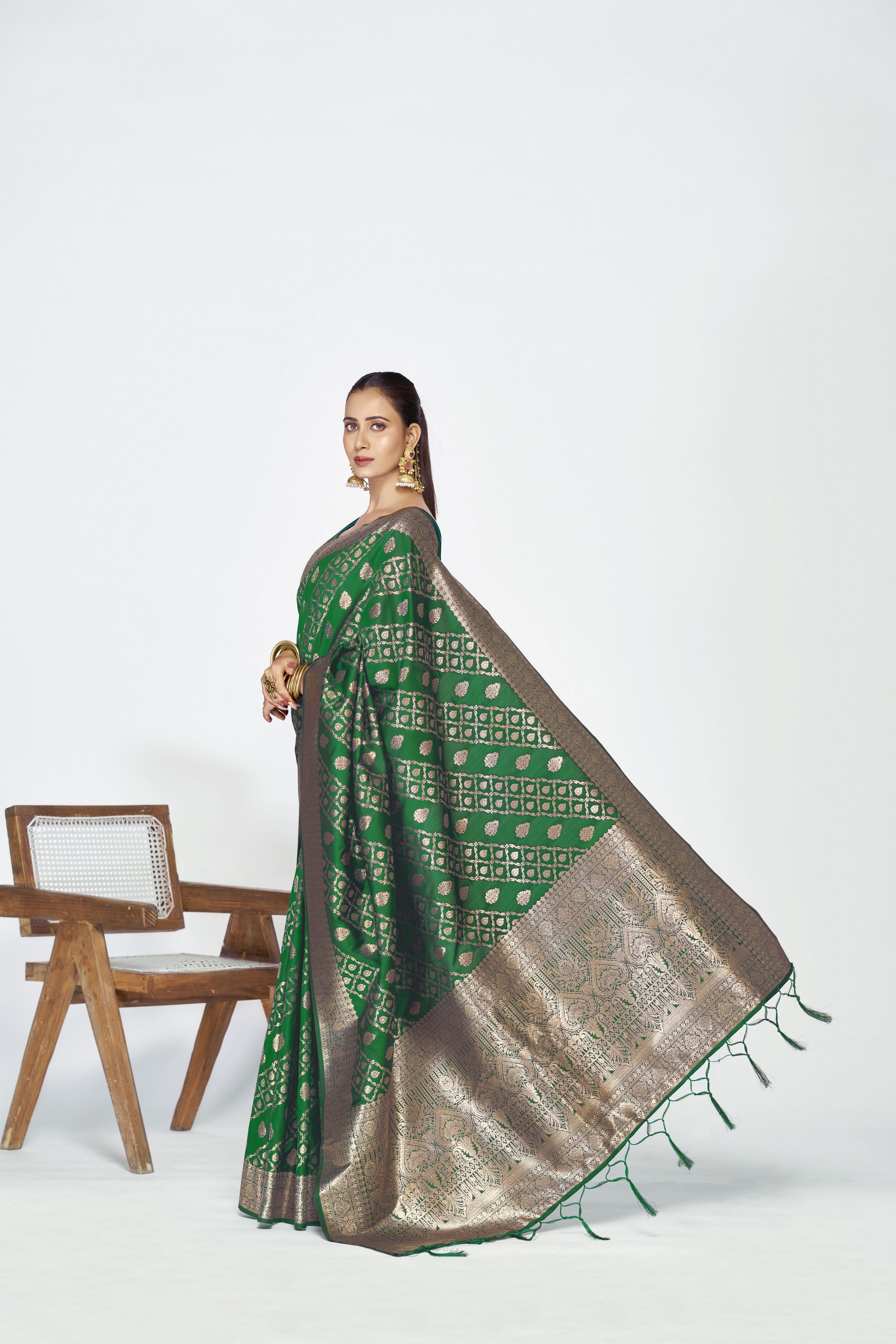 Green color Banarasi Silk fabric Woven Zari Designer Saree