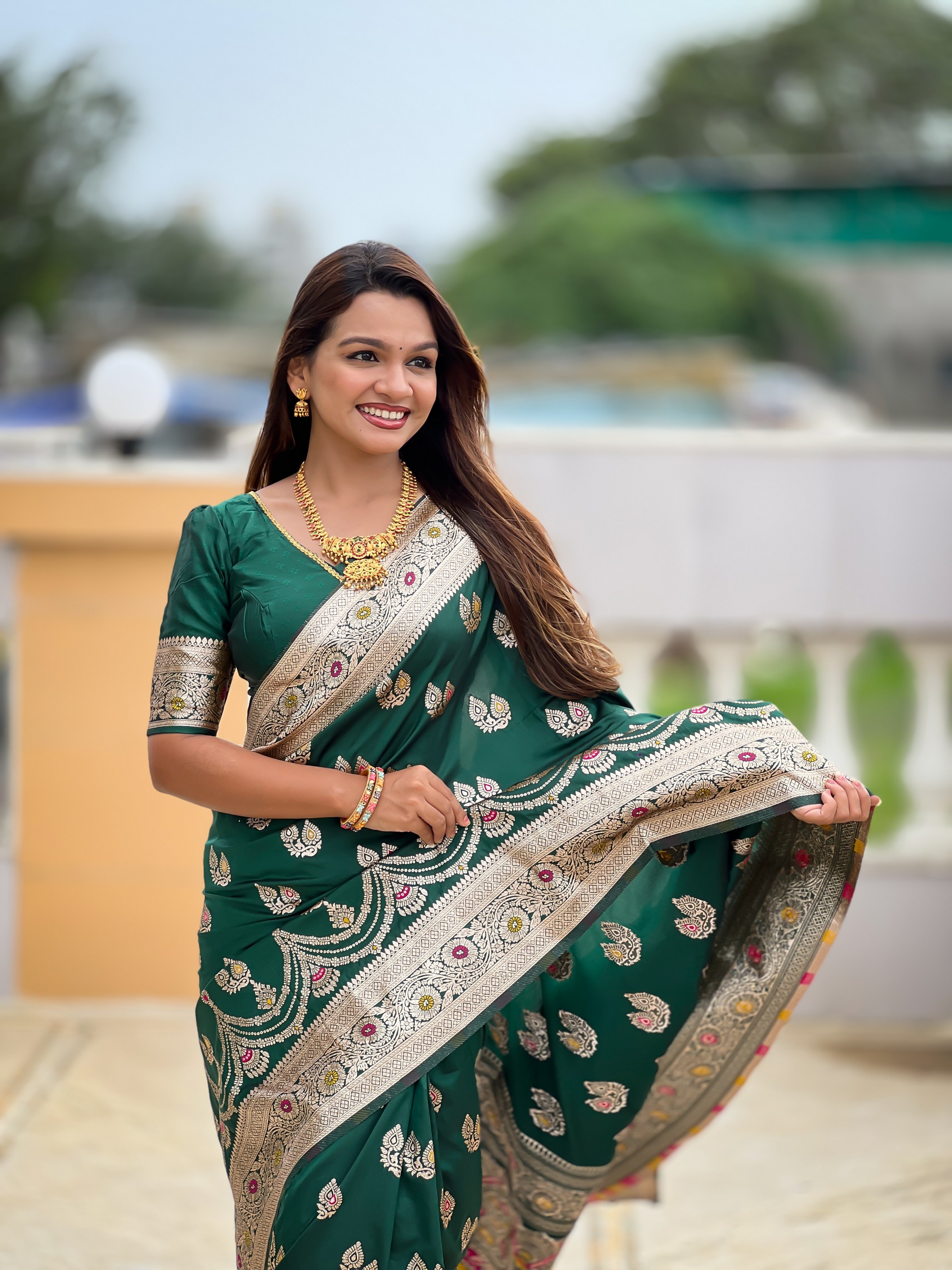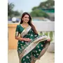 Green Color Banarasi Silk Saree With Woven Jacquard Designer Ethnic Style