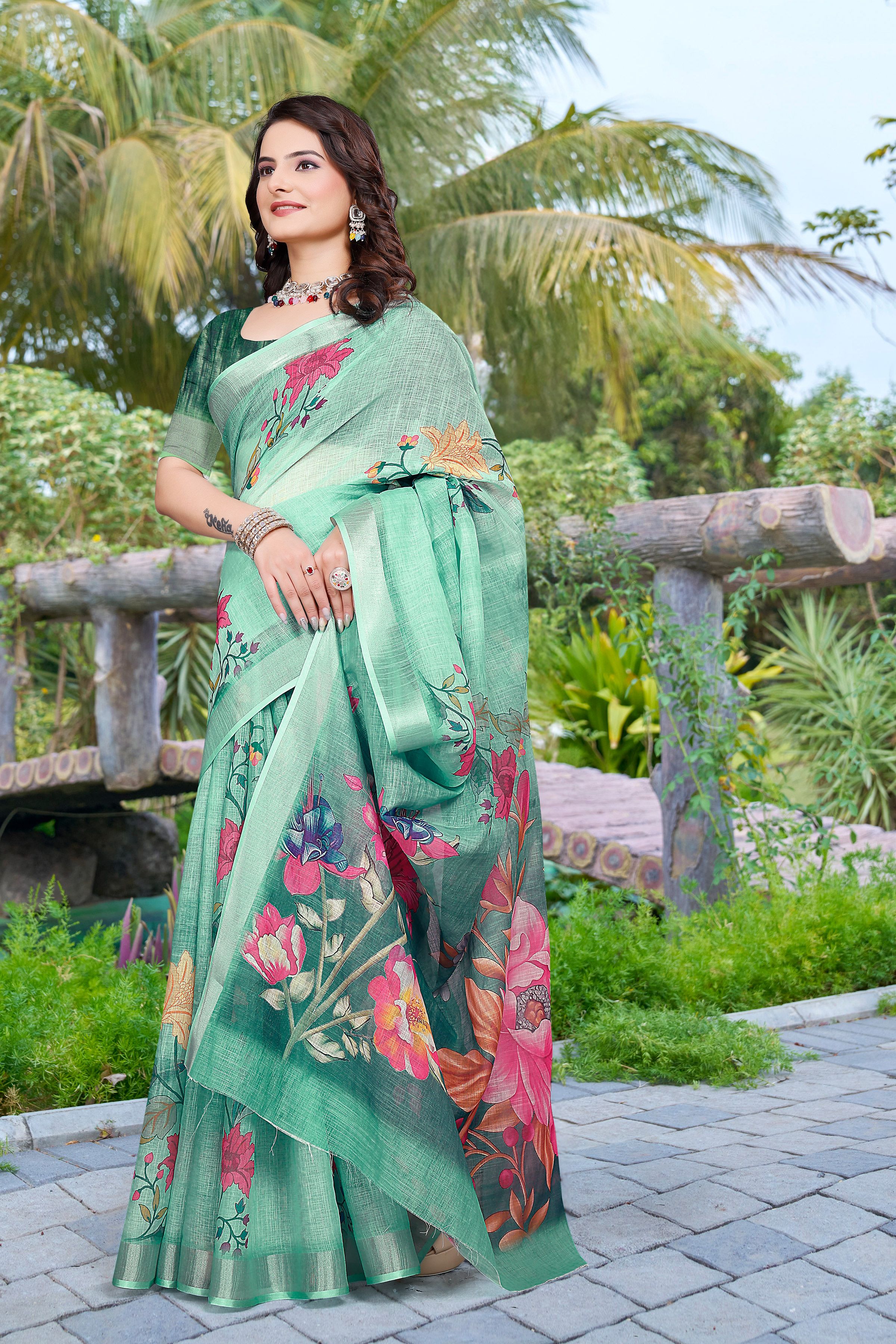 Attractive These Festive Saree in Fine Colored.These Saree Are Linen Cotton And Blouse is Fabricated On Linen Cotton Pair.Its Beautified With Woven Jari Border With Designer Digital Printed.