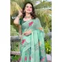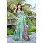 Green Color Beautiful Designer Printed Saree With Woven Border