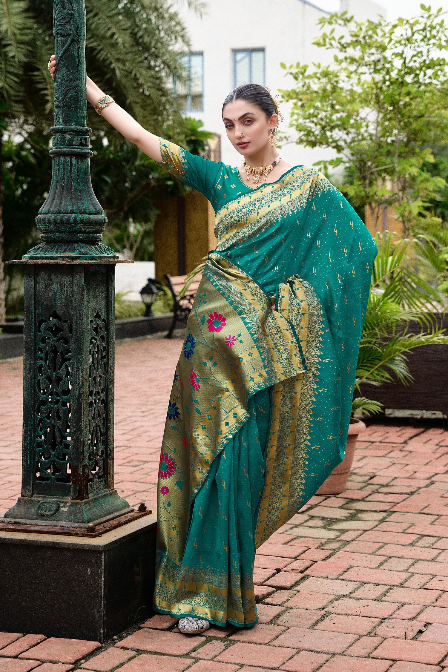 Green Color Beautiful Silk Blended Woven Zari Designer Ceremonial Saree