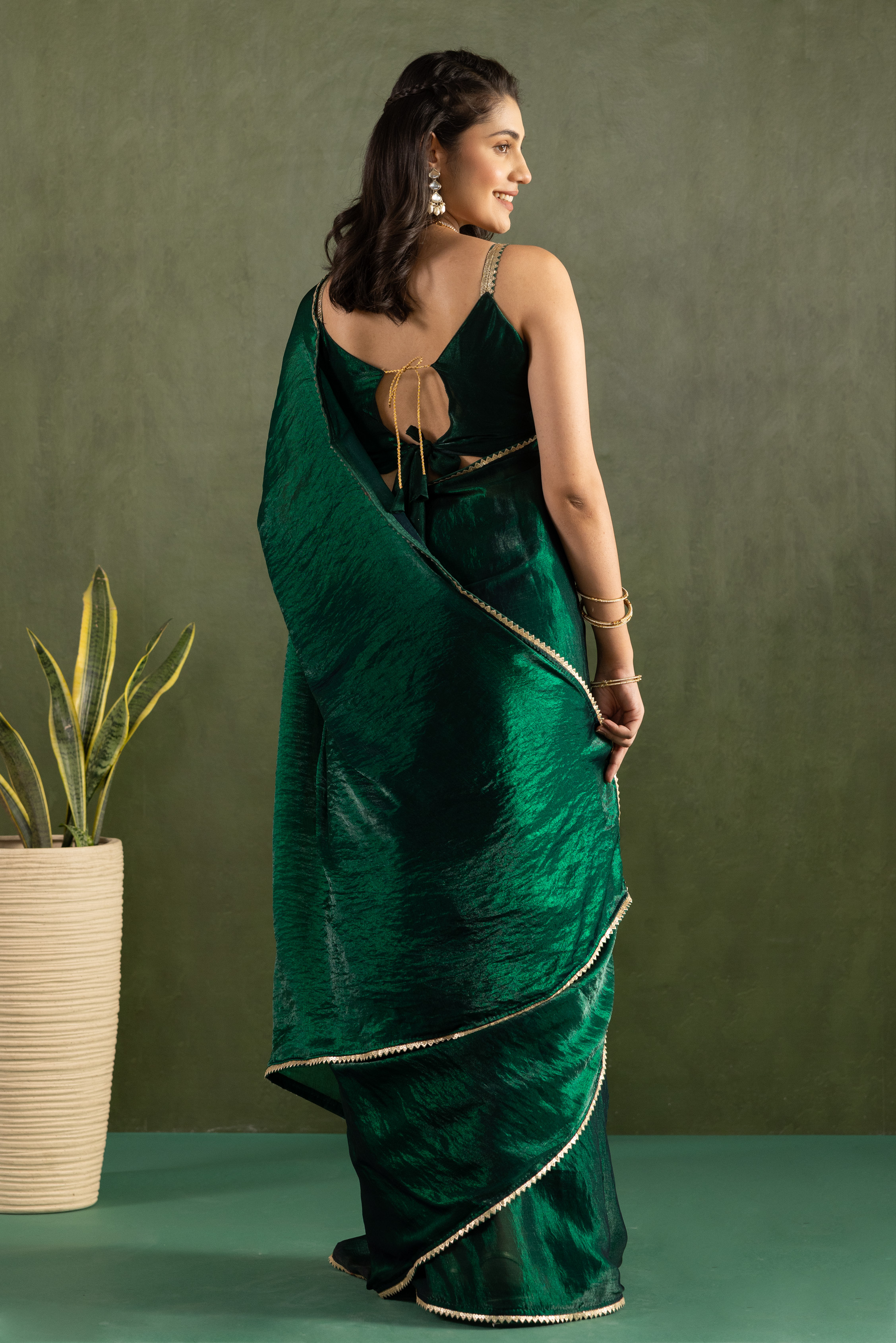 Green Color Chiffon Fabric Ready To Wear Designer Solid Partywear Saree